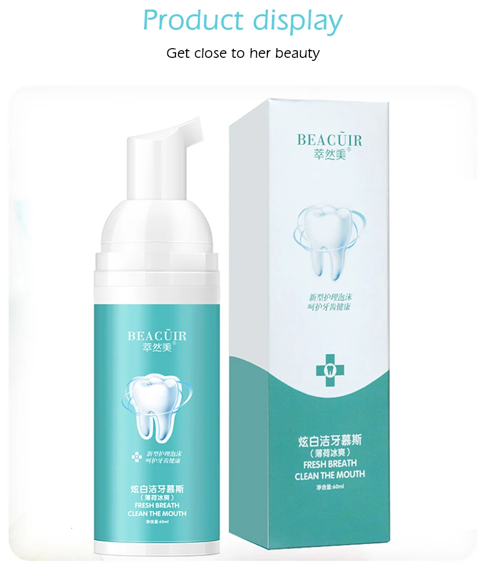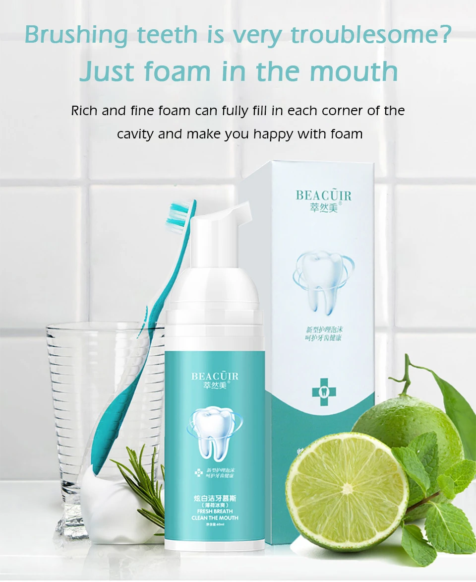 Уход за зубами BEACUIR, отбеливающий мусс, яркий зубной налет, удаление пятен от налета, восстановление свежего дыхания, повреждение полости рта, зубная паста для ухода за полостью рта