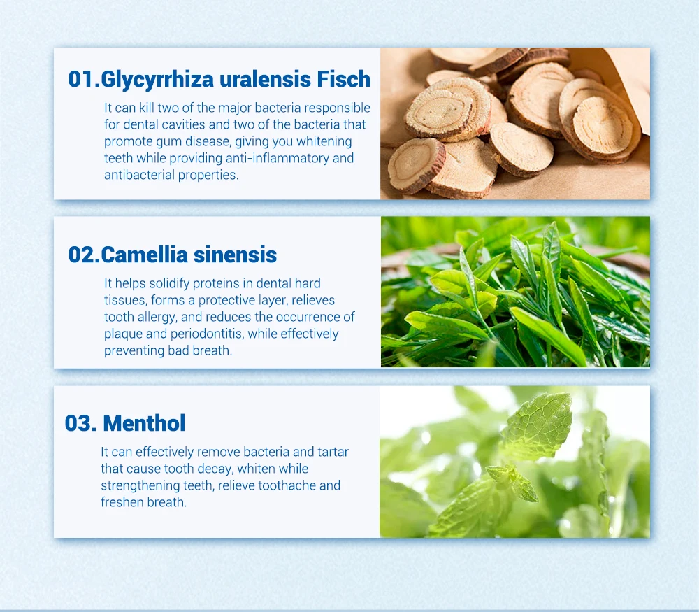 Преимущества: 8 растительных экстрактов, корневые проблемы для решения проблем полости рта