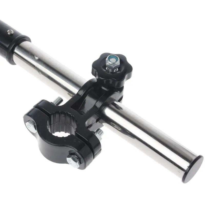 2-sections Umbrella Handlebar Holder for Bicycle/Motocycle. Simple design, very easy to mount on the handlebar of the bicycle or stroller. Every parts is adjustable, you can change to any angle you want. Ideal for riding in raining or sunny day, free your hand to add safety.