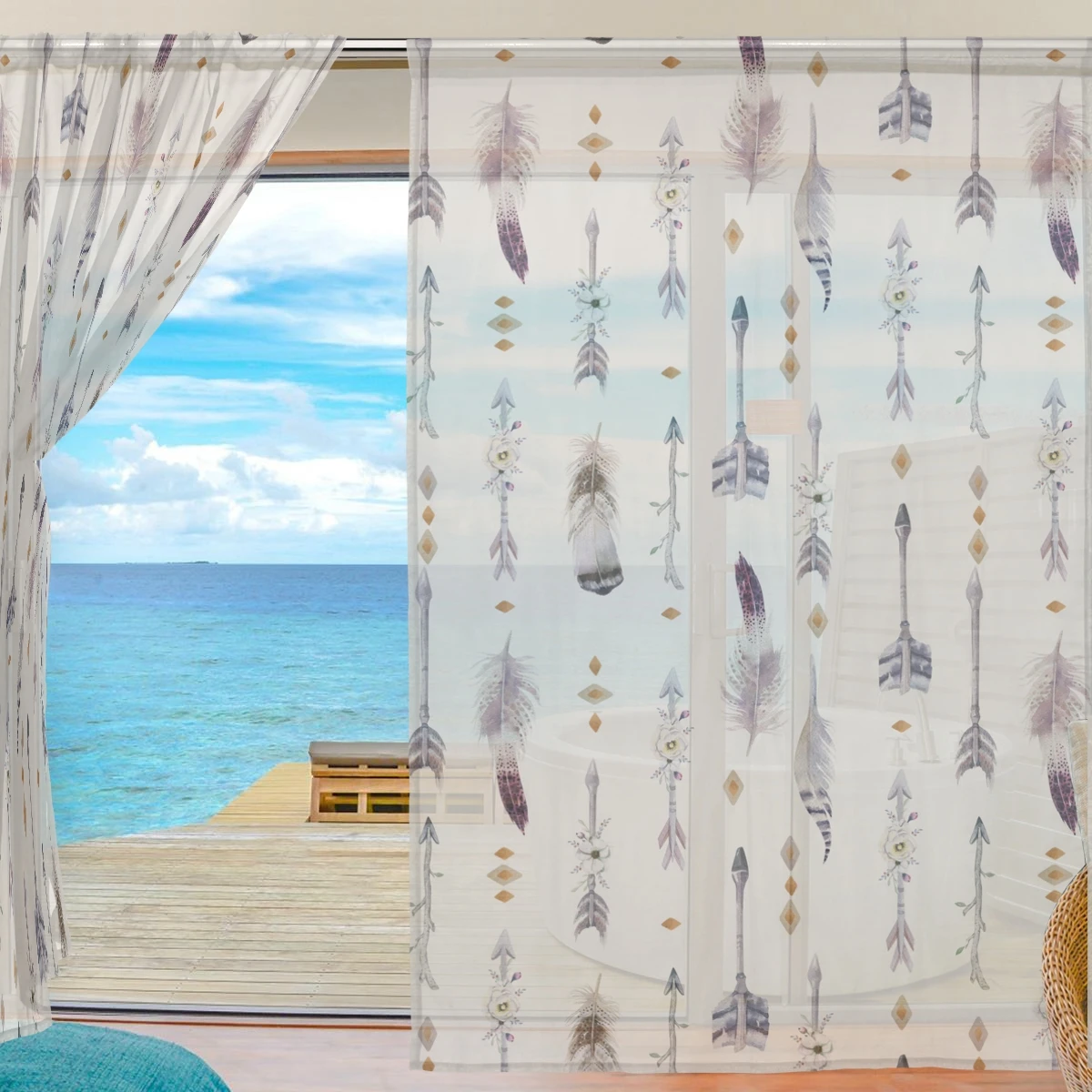 Акварель Бохо стрелы и перо Вуаль Окно длинная прозрачная занавеска цифровая печать Тюль полиэстер занавеска для гостиной спальни