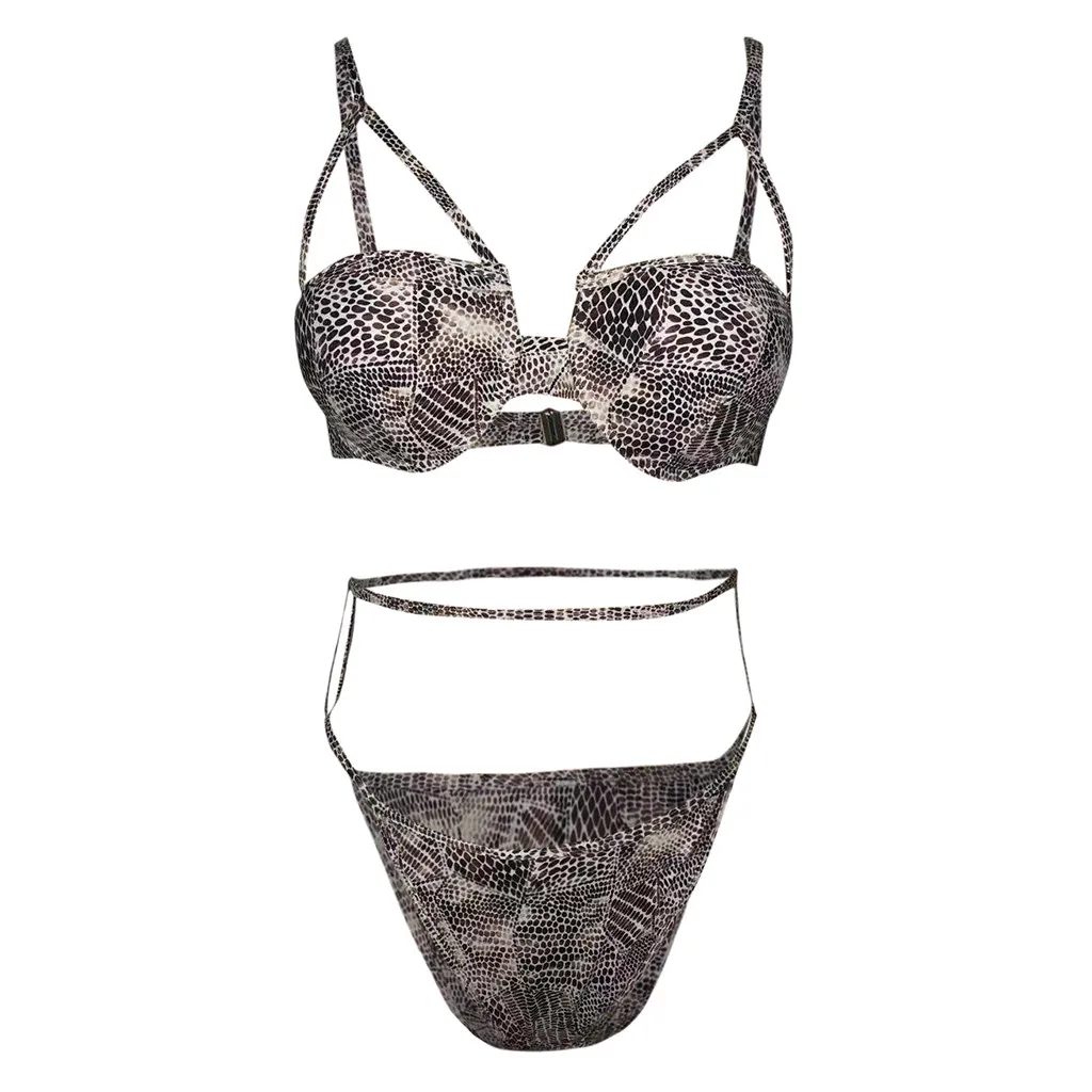 Змеиный принт бикини Женская повязка купальник с подкладкой пуш-ап купальник с открытыми плечами комплект бикини с высокой талией бикини пляжный купальный костюм