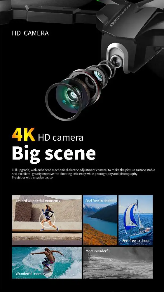 Функция: вверх/вниз, вперед/назад, поворот влево/вправо, боковой полет, определение барометрической высоты, позиционирование GPS, геомагнитный/Безголовый режим, автоматический возврат одной кнопкой, отслеживание одной кнопкой, защита от процентных точек, безопасность: Защита от низкого энергопотребления (автоматический возврат), защита от выхода из контроля (автоматический возврат потерянного сигнала)