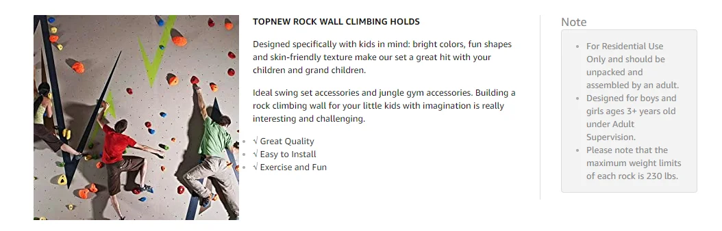 🏃Прочные и прочные лазания: изготовлены из высококачественной пластиковой смолы, устойчивы к погодным условиям и не трескаются и не выцветают, текстурированные лапы и ручки облегчают детям захват и подъем 🌈Получите ваших детей: поставляется в 10 ярких цветах и имеет несколько размеров и форм для строительства уникальной рок-стены, чтобы поощрить детей быть активными, тренировать силы детей, баланс, ловкость, гибкость и повышение их уверенности 🏃2 дюйма фурнитура входит в комплект: комплект включает в себя 32 различные цвета восхождение камни, 32 2,8 ''болты с шестигранной головкой, 32, плоские шайбы из нержавеющей стали 32 сварки гайки и шестигранный ключ, дюймовый стандарт, предназначен для установки на досках толщиной до 2 дюймов 🌈Каменная стена в помещении и на открытом воздухе: Простая установка позволяет построить каменную стену в детской комнате и на открытой игровой площадке, такой как тренажерный зал джунглей, домик на дереве, swingset, И т. д. это действительно отличное дополнение к вашему заднему двору 🏃Достаточно прочные до 230 фунтов: ручки rock wall достаточно прочные, чтобы держать малышей и взрослых, которые весят менее 230 фунтов, что позволяет вам и вашему ребенку/внуку тратить качество друг с другом