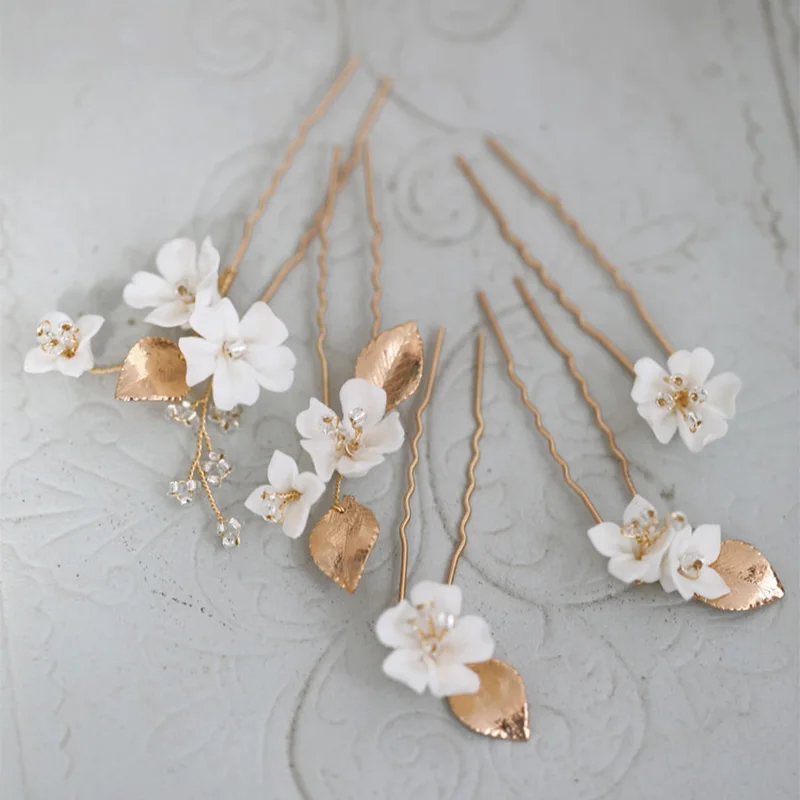 GibsonBridal-профессиональный свадебный аксессуар ручной работы, свадебная тиара, головная повязка, гребень для волос, свадебный пояс, свадебная фата и т. д. Белый цвет вишни керамические цветы шпильки для свадебной прически набор свадебный гребень для волос Аксессуары Ювелирные изделия головной убор Материал: белый керамический цветок, листья, Пресноводный Жемчуг, стразы Цвет: золотой цвет Все наши украшения изготовлены из высококачественного материала и с любовью к вашему главному дню. Не забудьте про подружки невесты или маленьких принцесс, сделайте их подарком в качестве напоминания о вашей свадьбе. Можно носить во многих различных свадебных прическах и обеспечить идеальное завершающее прикосновение к вашим волосам невесты!