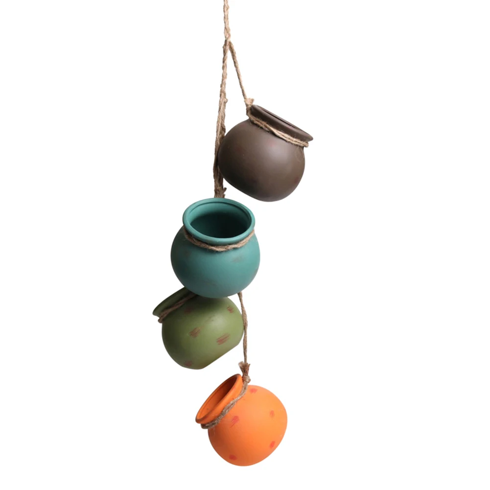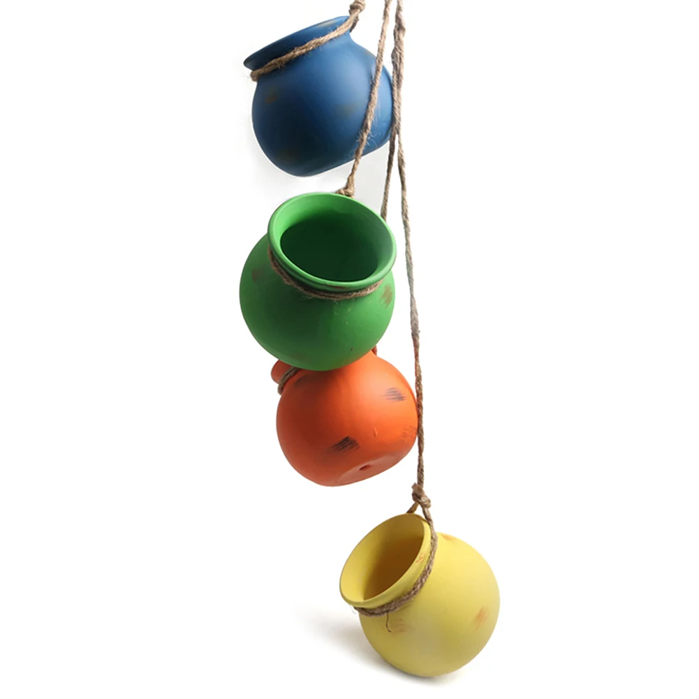 -Коричневый джутовый канат, соединяющий 4 горшка, имеет петлю, предназначенную для подвешивания от стены или потолка.