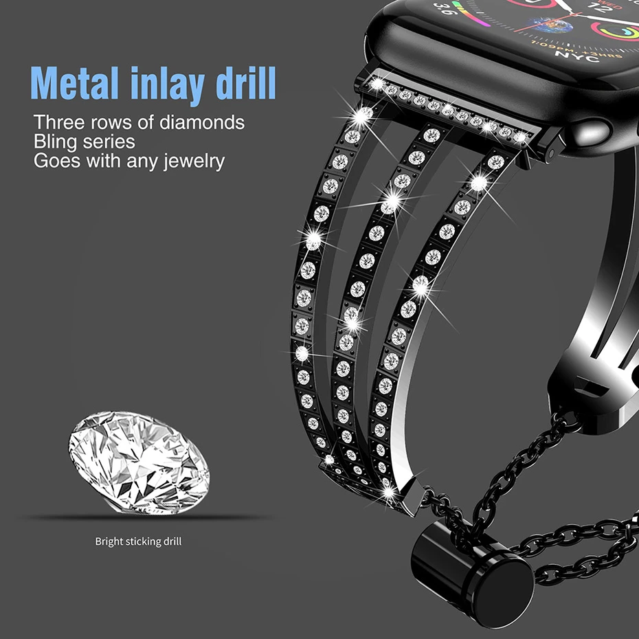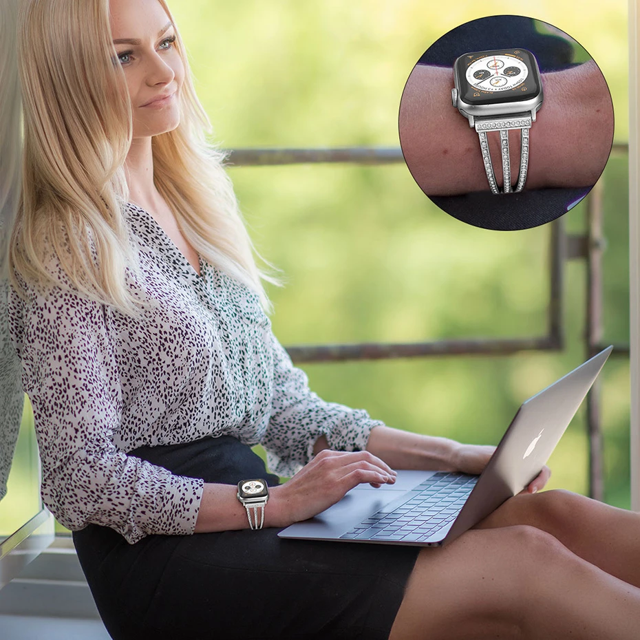 Нарядный и женственный: элегантный и светильник для комплимент svelte/запястья; Набор с тонкими и блестящие стразы, металлический браслет сделает ваши часы Apple Watch более шикарный и женственный