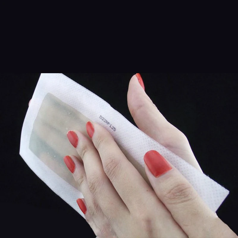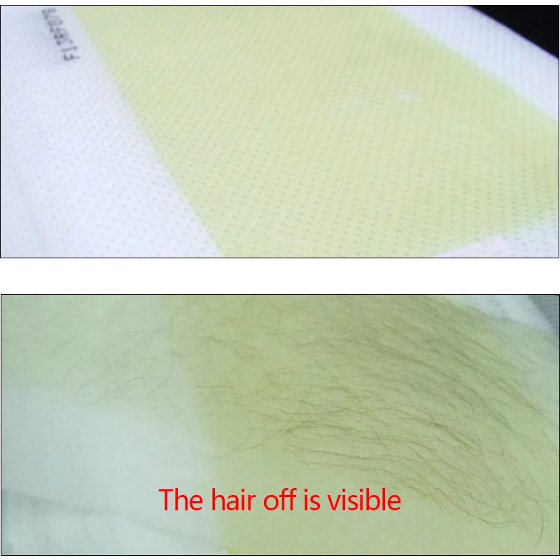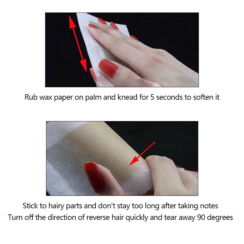 4. Наклейте вощеную бумагу на депилярованную часть вдоль депиляционного направления, гладьте и прилипайте к депиляционной части, и не нужно оставаться слишком долго после наклеивания