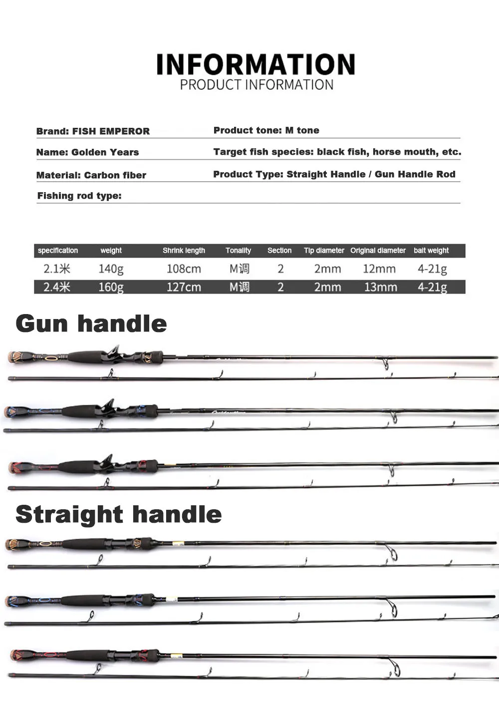 Тип: приманка стержень Материал: углерода Цвет: красный/синий/золотой Тон: M ключ Параметры: 2,1/2,4 м Длина сжатия: 108 / 126 см Вес нетто: 150 / 170 г Упаковка: изысканная упаковка стержня и трубки Транспортировка: Применение высокого качества с пупырчатой пленкой 360 ° по шкале Мооса посылка для того, чтобы обеспечить целостность продукта и безопасную транспортировку!