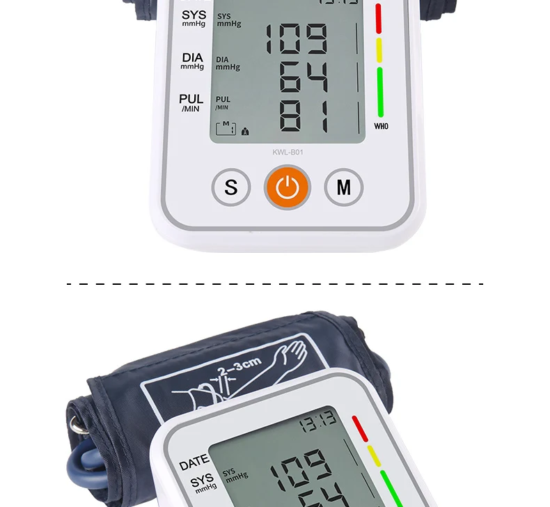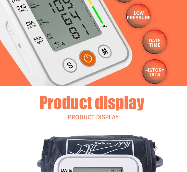 1. Измерение одной кнопкой 2. Память 99 единиц памяти для каждой группы. Отображение трех последних средних измерений. 3. Запрос данных памяти в последовательности 4. ЖК-дисплей HD: данные дисплея четко видны. 5. Операция автоматически выключается в течение 1 минуты без операции 6. Точность измерения артериального давления: простая быстрая и точная. 7. Аритмия сердечного ритма дает эффективное предупреждение о проблемах с сердцем. 8. Маленький, легко носить с собой. 9. Два способа питания: DC6V или 1,5 V * 4 AAA батареи (не входят в комплект)