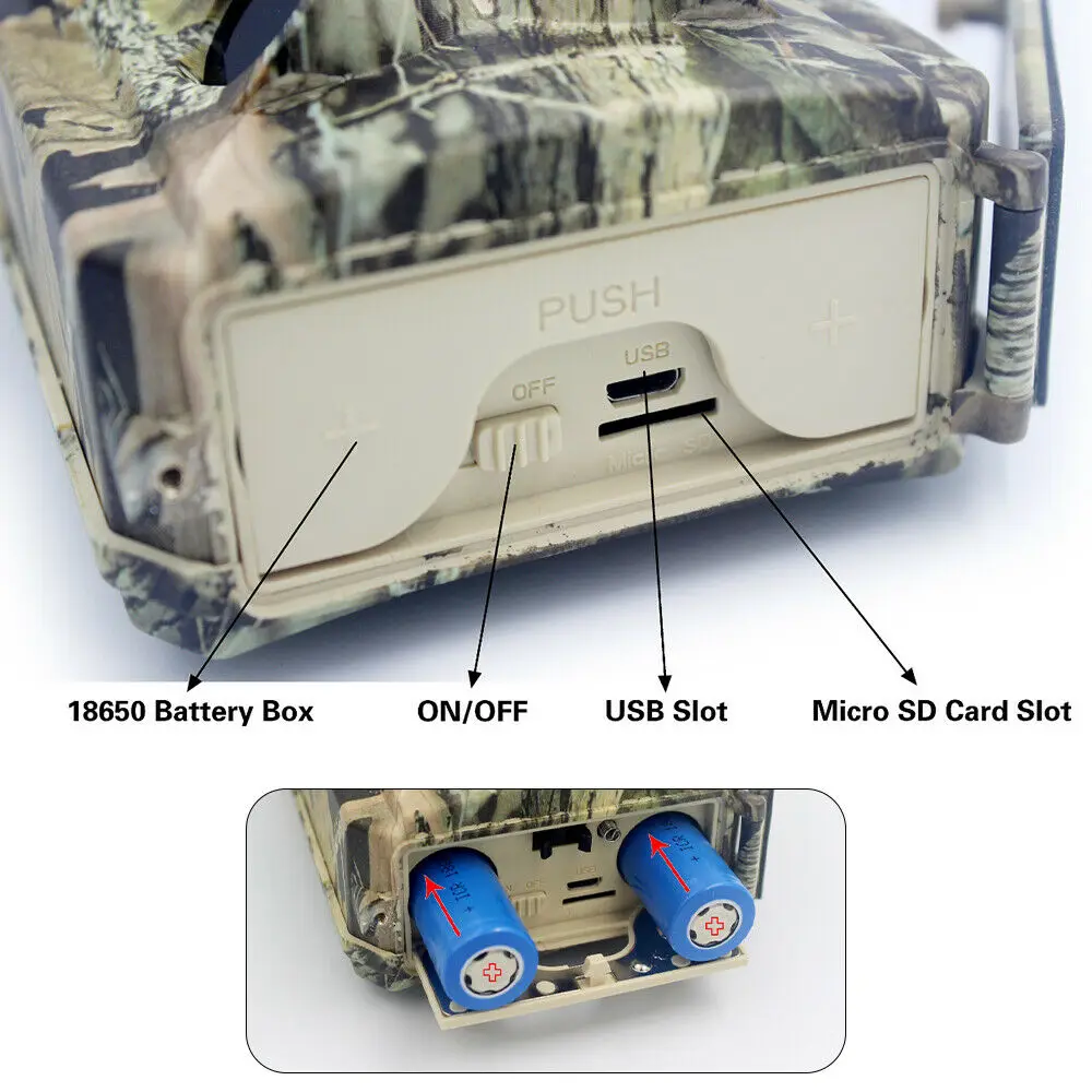 A: Откройте батарейный отсек и поместите 2 шт. 18650 батарей (PR400) в камеру B: вставьте tf-карту в камеру, как на следующем фото C: Положите переключитесь в положение «ВКЛ, а индикатор светильник будет мигать в 2 раза для выхода в свет, Камера войдет PIR распознает статус. D: он будет делать 3 фотографии и 10s видео запись, когда он обнаружен PIR E: он не будет снимать фото и видео рекордер, когда он не имеет обнаружения PIR, он войдет в режим ожидания или отключится F: имеет функцию перезаписи