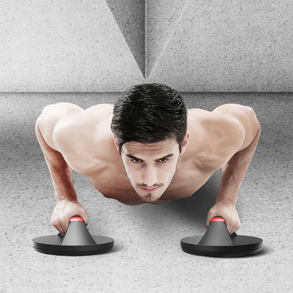 Подставки пуш-ап с круглым основанием и эргономичной нескользящей ручкой обеспечивают лучшую стабильность во время тренировок, отличное тренировочное оборудование для рук, груди, спины, плеч и сердцевины.