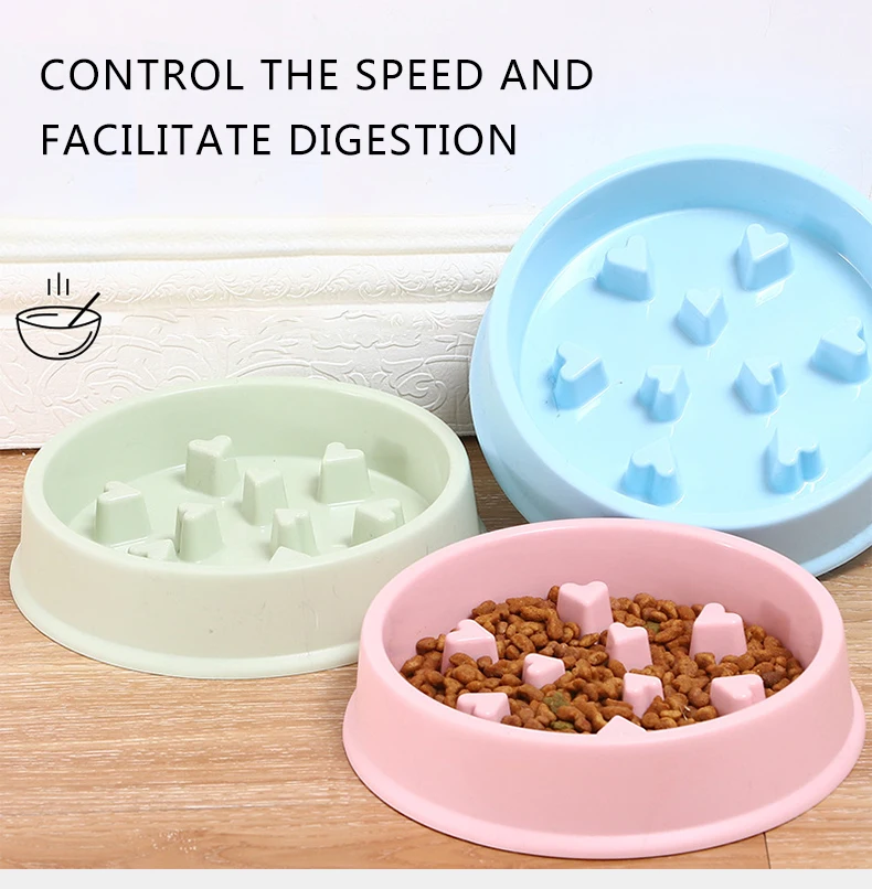 Полезная миска для собак, медленная подача, Пластиковая форма сердца, медленная пищевая миска для собак, кошек, против удушения, товары для домашних животных
