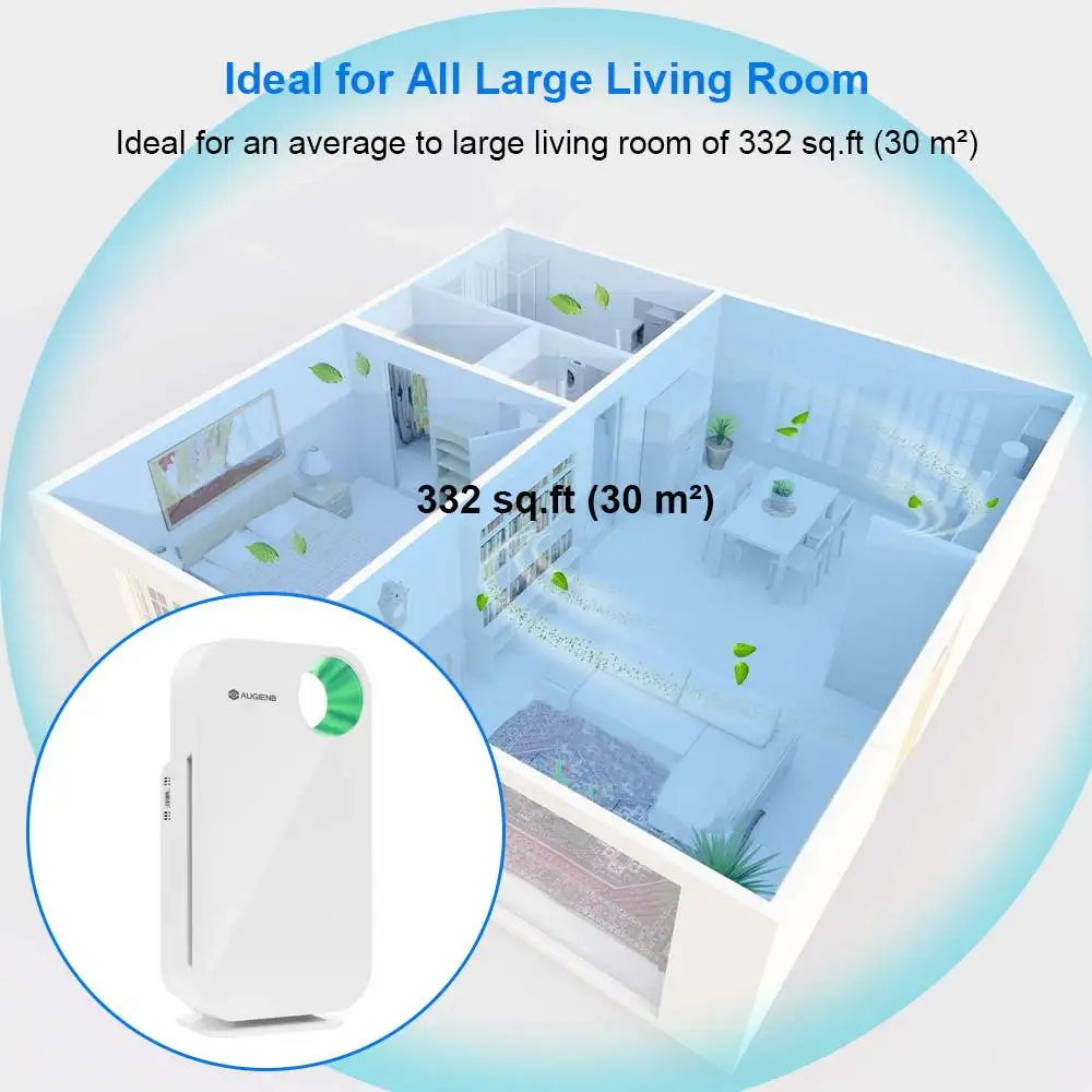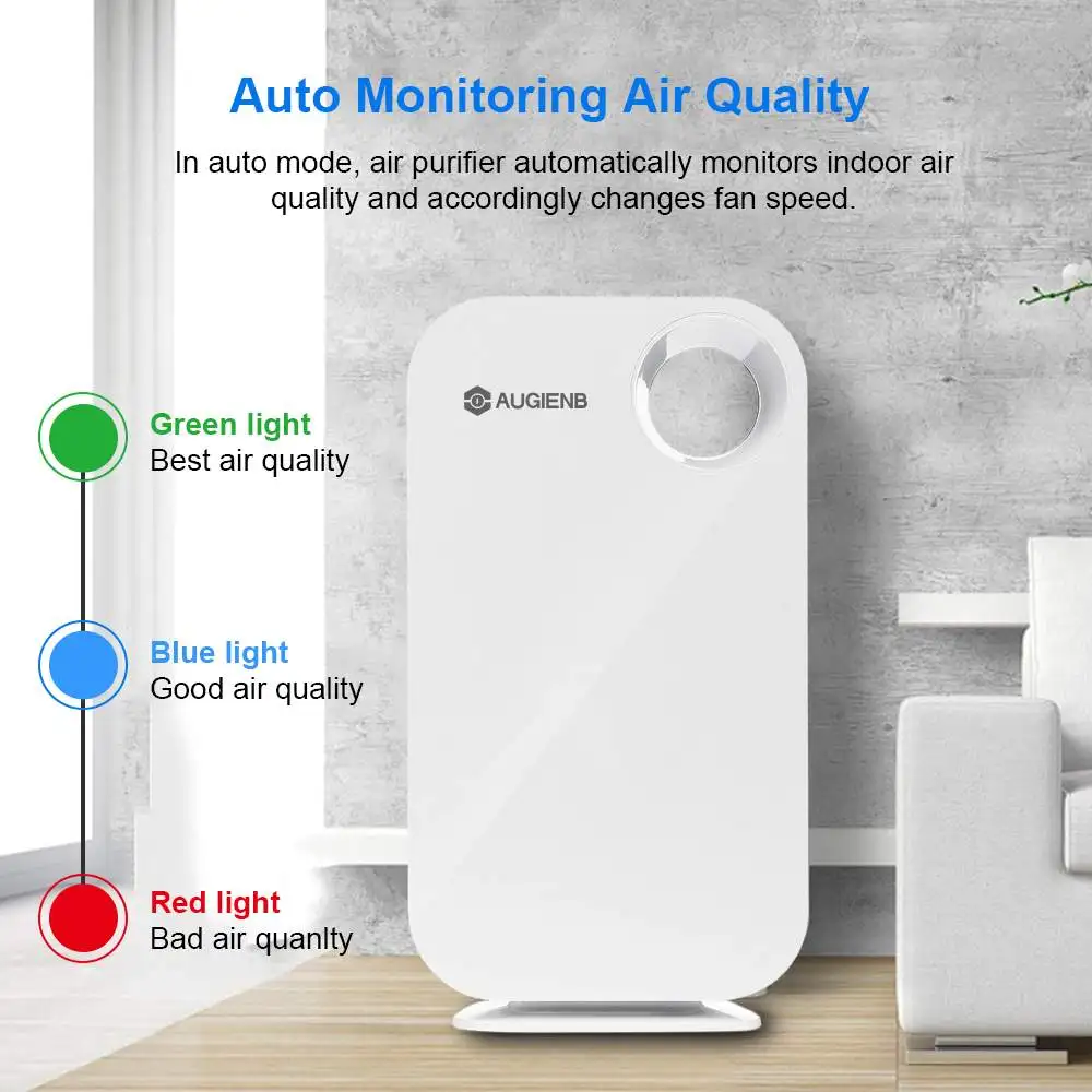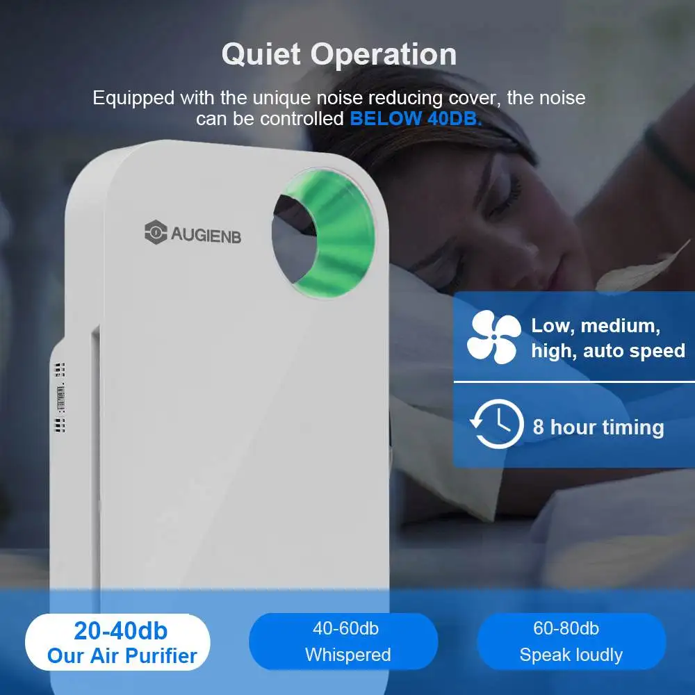 AUGIENB очиститель воздуха для домашней большой комнаты с истинным фильтром HEPA, удаление99.97%PM2.5 очиститель воздуха для аллергии и домашних животных, курильщиков, плесени, пыльцы, пыли, тихих устранения запаха для спальни, смарт-датчик, идеально подходит для50 м²Большая комната,300м 3/ч