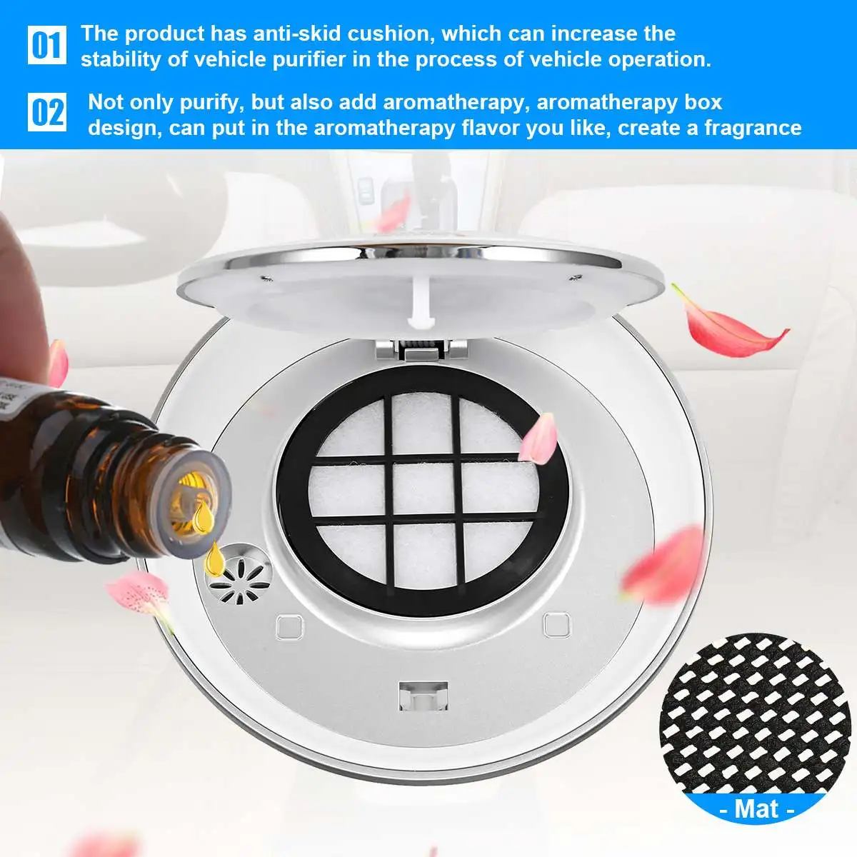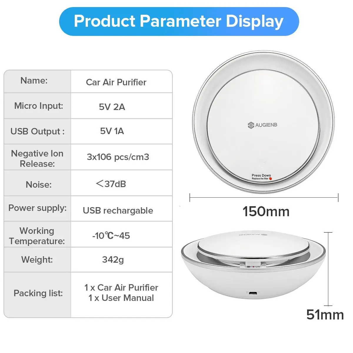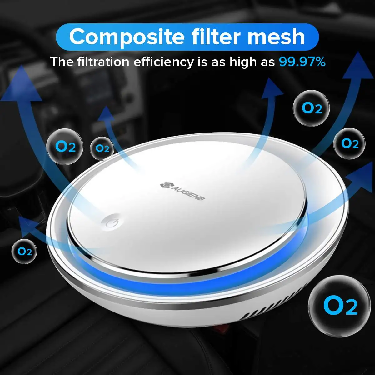 Автомобильный очиститель воздуха AUGIENB с 3 миллионами отрицательных ионов и ароматерапии, 3 файла скорости ветра,Настоящий Фильтр HEPA,Светильник RGB, Ультра тихий и ночной Светильник, удаляет дым/запахи/пыль/бактерии/пыльца