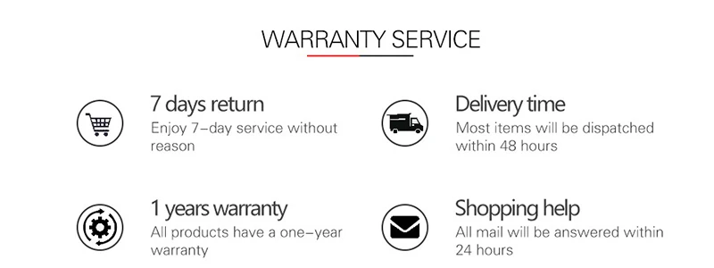 1) Если по какой-то причине вы не удовлетворены нашим обслуживанием или качеством продукции, пожалуйста, свяжитесь с нами в течение 3 дней после Вы получаете посылка, вы можете вернуть нам товары в оригинальной посылка, и мы вернем вам деньги после того, как получим посылка! (Стоимость доставки не возвращается, и вы должны нести ответственность за обратную доставку). 2) хотя мы тестируем каждый товар и он упакован профессионально, во время доставки может быть повреждено небольшое количество изделий (менее 0.1%). Вы можете связаться с нами в течение 3 дней после получения вашей посылка о замене. 3) некоторые предметы могут быть повреждены из-за неправильного использования, мы всегда рады предложить любые полезные услуги по ремонту. Конечно, вы можете отправить поврежденные товары обратно к нам, и мы поможем вам решить ситуацию и взимать разумные расходы на ремонт.