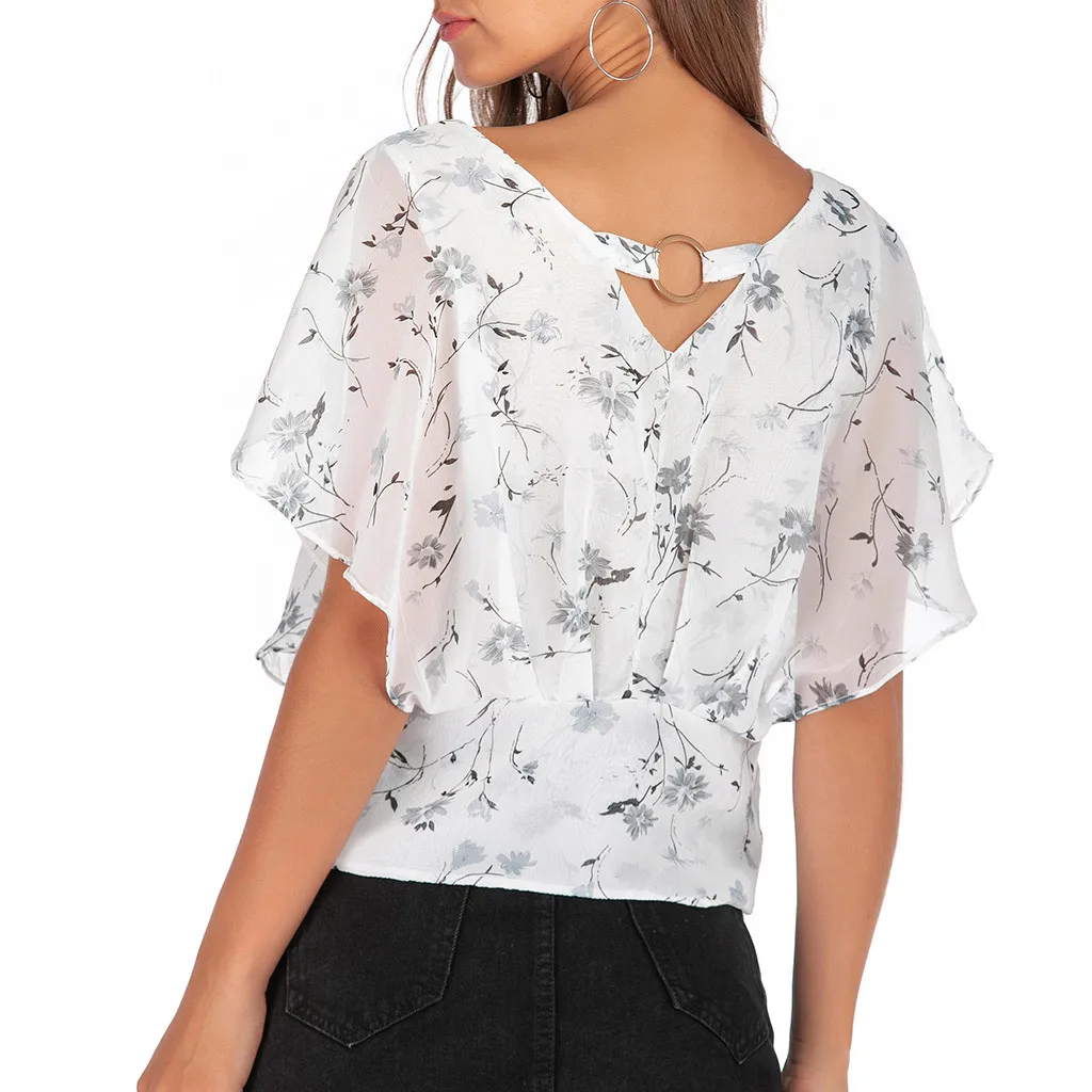 Женская модная офисная футболка с коротким рукавом и v-образным вырезом