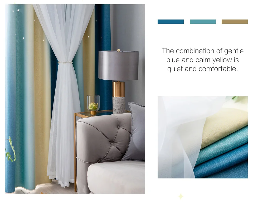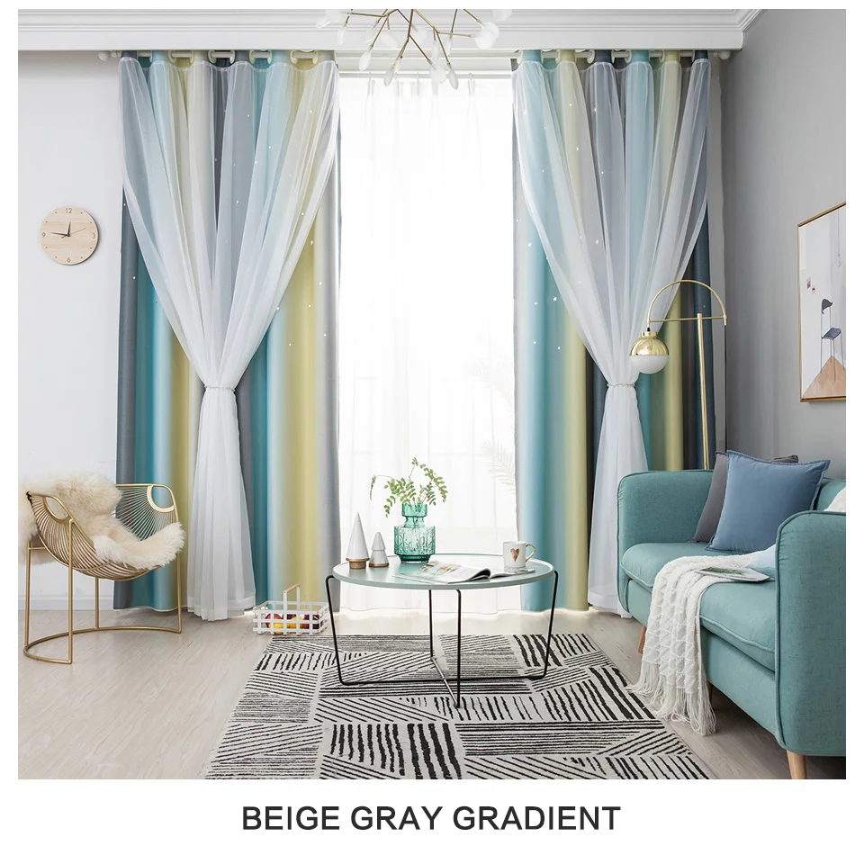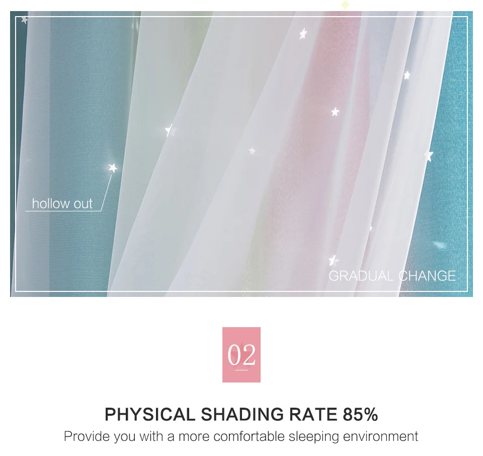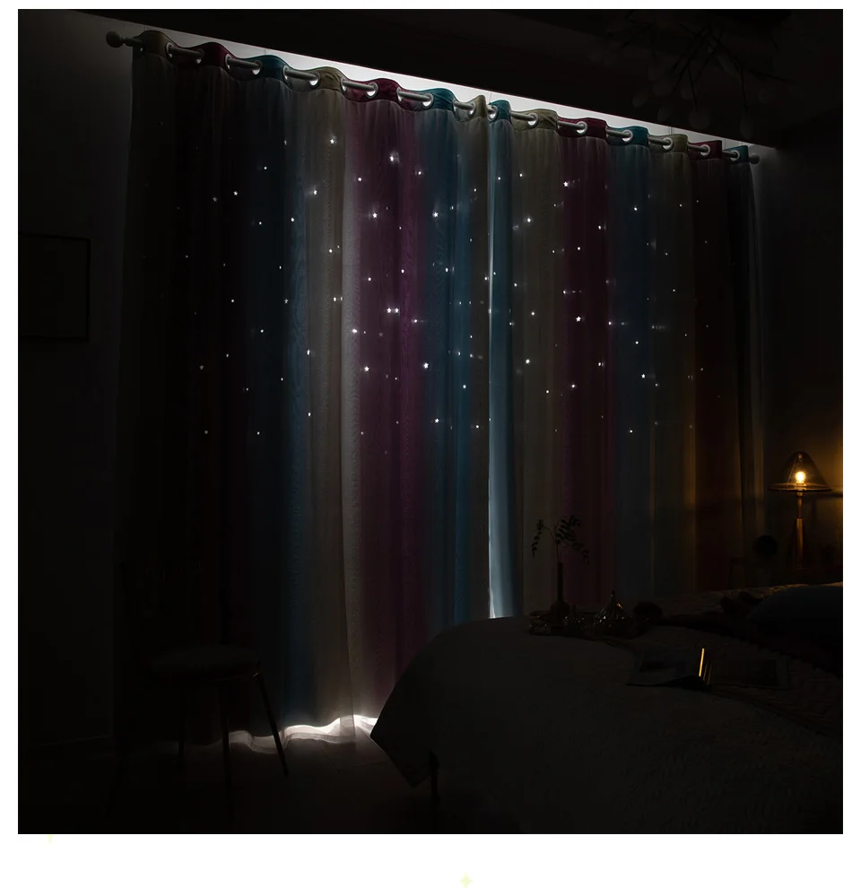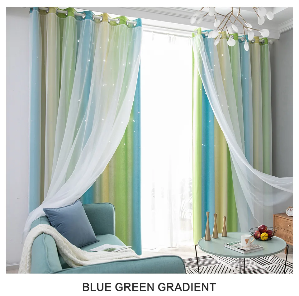 Градиент цвета радуги полые звезды двухслойные затемненные занавески для девочек белые прозрачные оконные шторы для спальни гостиной