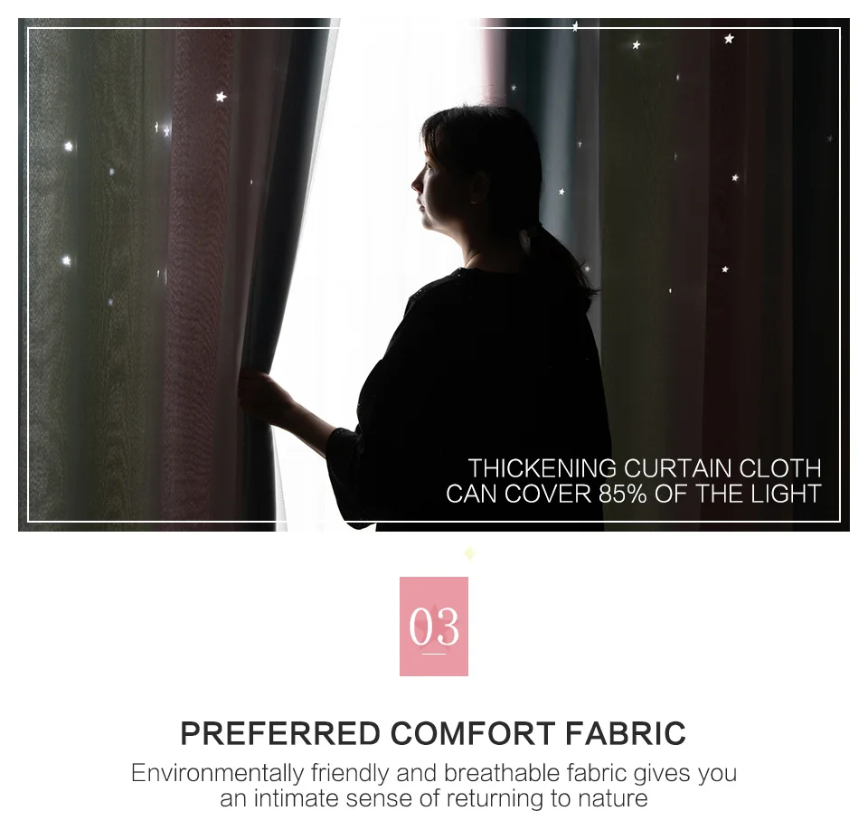 Серебристые Звездные затемненные занавески для гостиной, спальни, белые тюлевые прозрачные Занавески, тканевые занавески, обработка окон, короткие, голубые, розовые