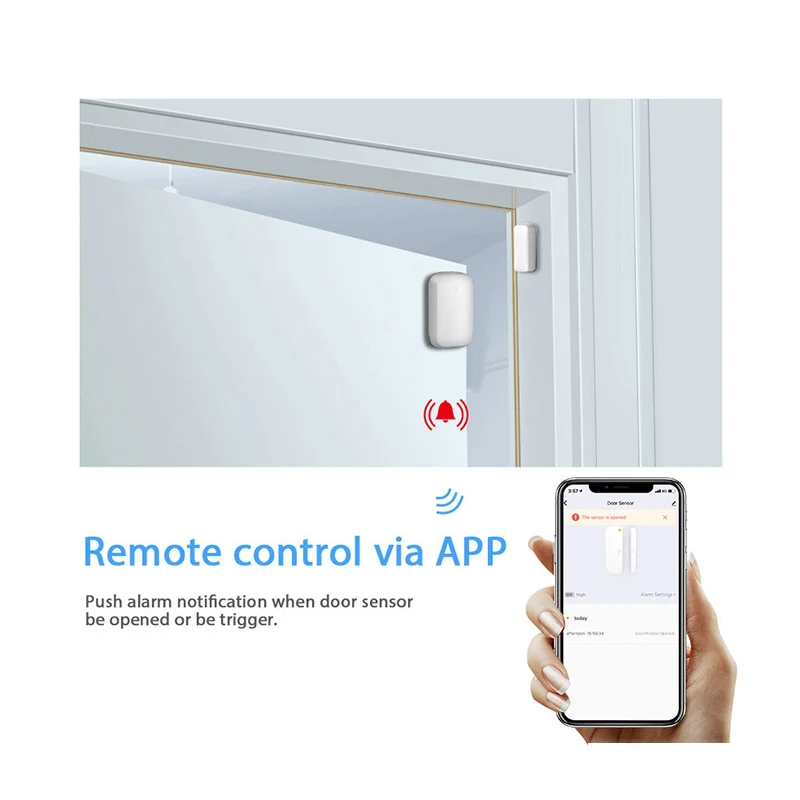 Датчик двери и окна обнаруживает открытие или закрытие дверей и окон и контролирует состояние вашей домашней двери и окон, даже если вас нет дома.
