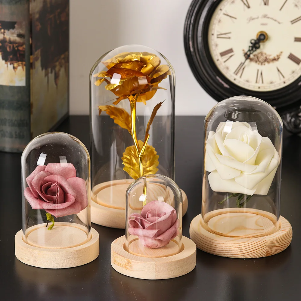 Коробка для хранения цветов стеклянная Пылезащитная крышка прозрачная бутылка стеклянная ваза деревянная основа сказочные огни Террариум настольный домашний декор