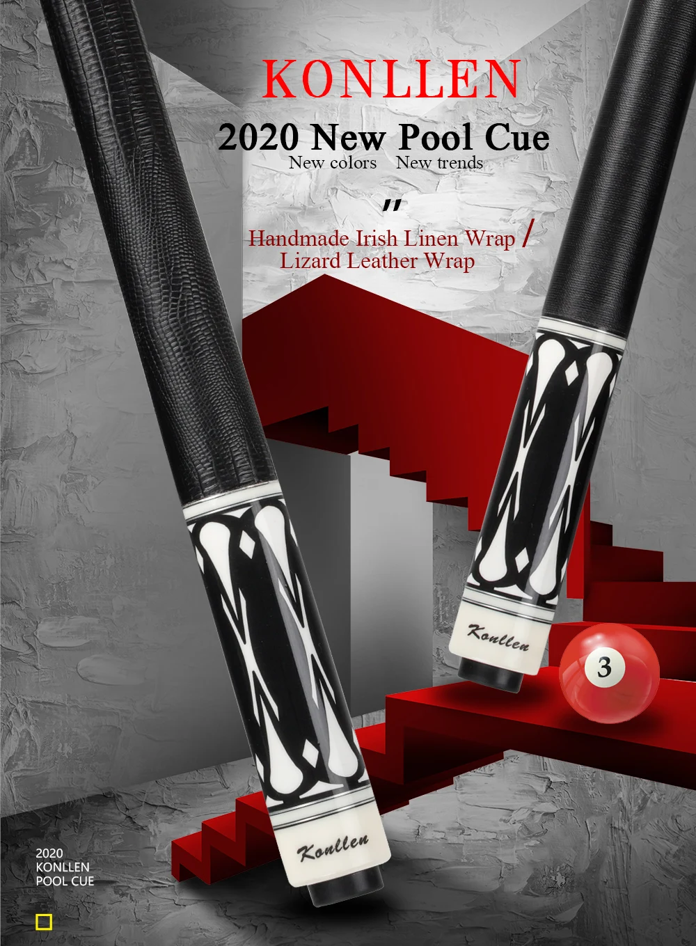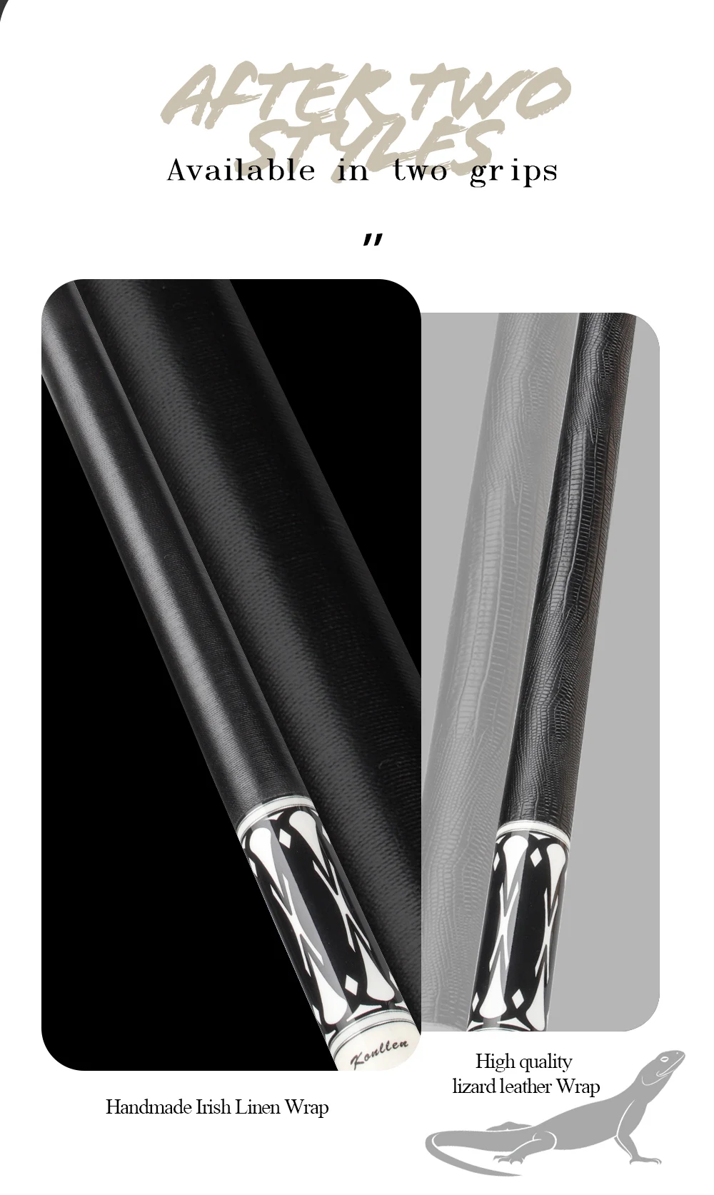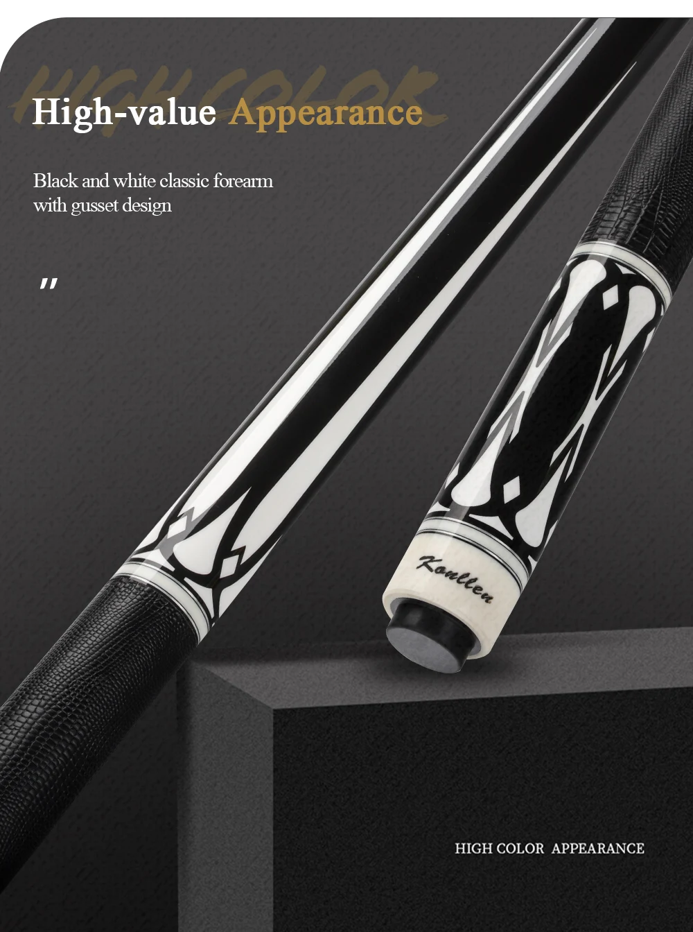 Features: 1.Available in two grips,Handmade Irish Linen Wrap and High quality lizard leather Wrap 2.High-value Appearance,Black and white classic forearm with gusset design 3.10 Teeth Joint Stable Transmission 4.AXD North American Maple Shaft 5.13mm Multi-layer Black Tip Specifications: Brand:KONLLEN Series:Pool Cue Name:KONLLEN-1/2 Ferrule:XTC Ferrule Length:147cm Structure:1/2 Split Cue Style:Pool Cue Shaft:North American Maple Wood Joint:Stainless Steel Weight:19-20oz Wrap:Irish Line Wrap/Lizard Leather Wrap Tip:13mm Pigskin Tip Package includes: 1 butt+1 shaft+Joint protector+1 extension