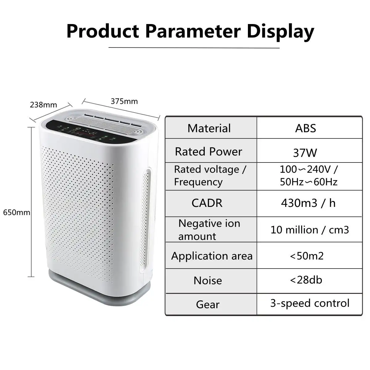 L тихая работа:Оснащенный уникальным покрытием для снижения уровня шума, шум может управляться ниже 28 дБ, чтобы создать более спокойную спящую среду. Для средней и большой гостиной 35 м. Кадр: 550м 3/ч, освежить волосы в течение 8 минут;