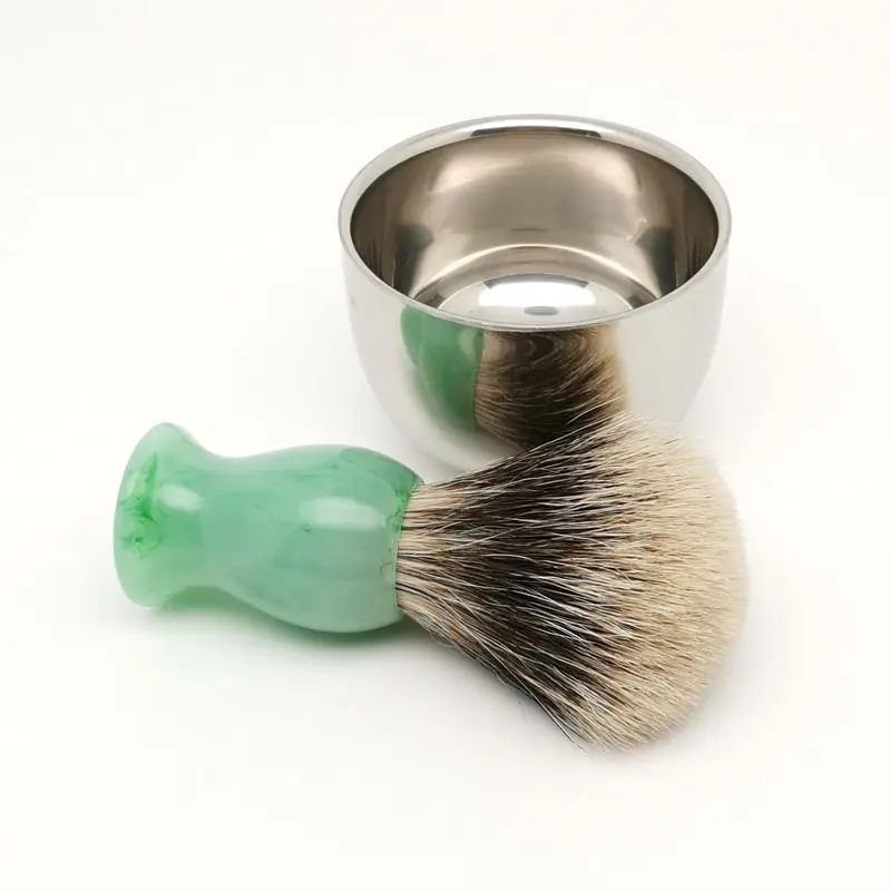 Информация о товаре: • Кисть ручной работы с 100% тончайшими барсуковыми волосами высшего качества. Средний размер и вес идеально подходят для всех влажных бритв. Мы производим щетку для бритья, а также обрабатываем волосы барсука, поэтому мы можем предоставить лучшие кисти по лучшей цене. • Кисть может использоваться с любым мылом для бритья и кремом для бритья для влажного бритья. Быстро создает идеальную богатую пену. Эргономичная ручка в форме вазы изготовлена из смолы. Легко держать в руке во влажной среде. • Высококачественная двухслойная чаша для бритья из нержавеющей стали. • Набор для бритья включает в себя кисть для бритья и чашу для бритья. Только кисточка для бритья упакована в подарочную коробку.
