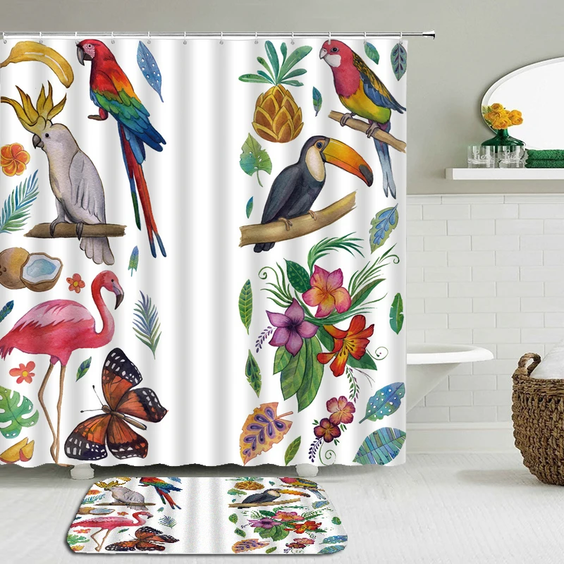 2 шт./компл. Набор ковриков для душевой занавески Toucan Bird Flower с принтом водонепроницаемая ткань для ванной комнаты с нескользящим полом Набор для туалетной ванны и занавесок