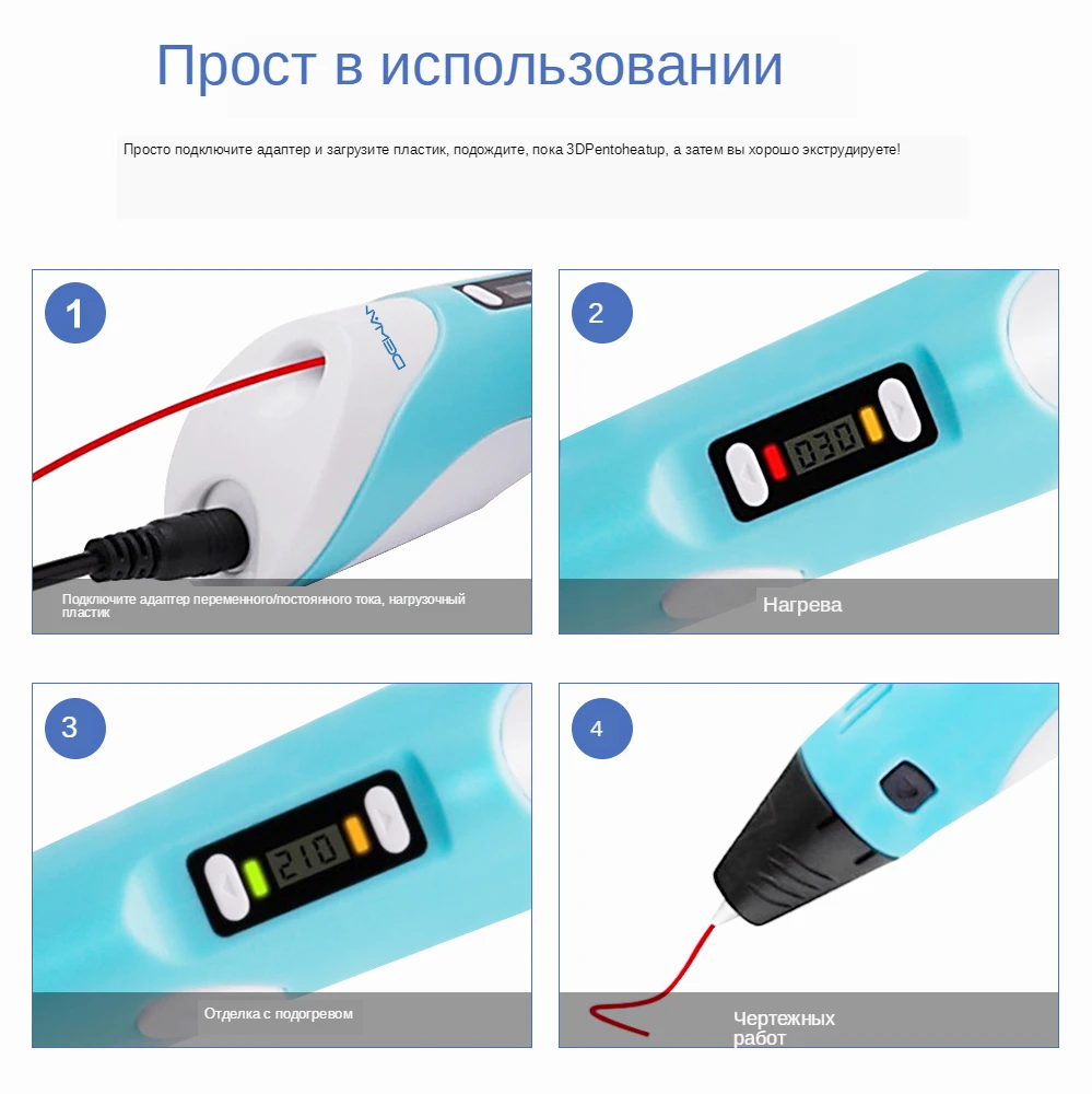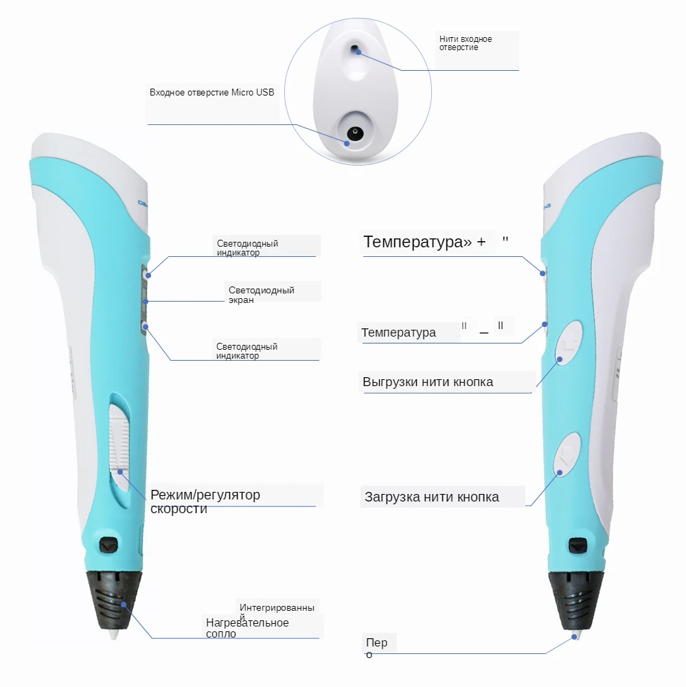 Ультра безопасно! DIY 3D печатная ручка прошла сертификацию CE/RoSH/FCC/EN71. Детский подарок на день рождения 3d-ручка-лучший подарок для детей на день рождения. 3D Ручка-это отличный школьный подарок, который отправляется однокласснику. В режиме реального времени отзывы! Светодиодный экран на 3d-ручке способен особенно быстро отображать температуру тока. Регулируемая скорость печати! Включите регулировку скорости, сползая соответствующую кнопку. Автоматический спящий режим! 3d-ручка для детей автоматически переходит в спящий режим, если вы не используете ее в течение 2 минут или дольше. Простой в использовании! Желтый светильник показывает мощность. Нажимаемый переключатель накаливания. Красный светильник для режима нагрева, когда красный светильник поворачивается к синему, показать Предварительный нагрев закончен.
