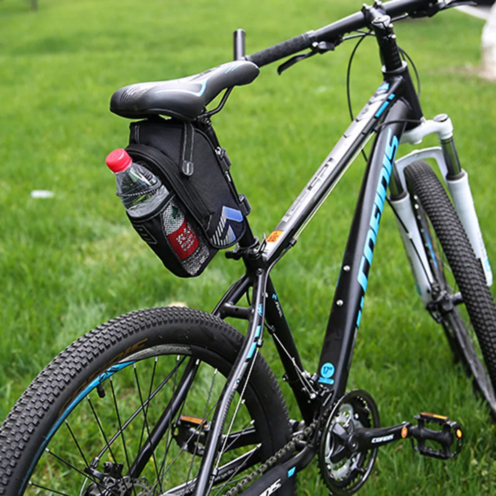 Stap design for quick release & installation High quality fabrics Extended pocket fit for bottle raincoat Reflective strip for safe nighttime riding Suitable for a variety of bicycles