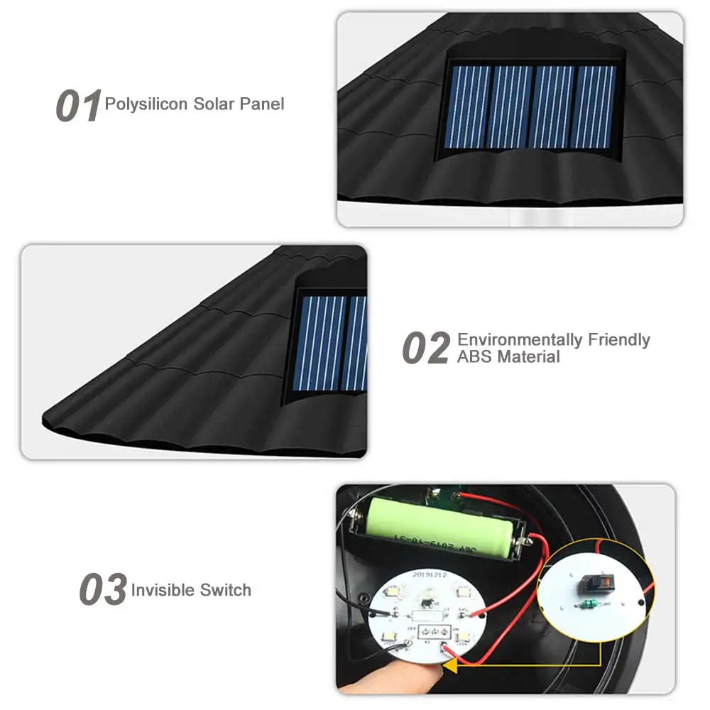 Солнечная панель будет заряжать и выдавать светильник только в положении «ON», и, пожалуйста, установите светильник под прямой солнечный светильник для зарядки.