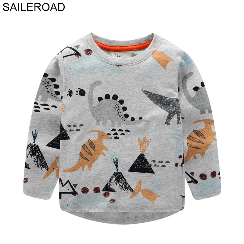 SAILEROAD/оптовая продажа футболок из 3 предметов футболки с длинными рукавами для мальчиков с динозавром осенние хлопковые детские футболки хлопковая одежда для малышей