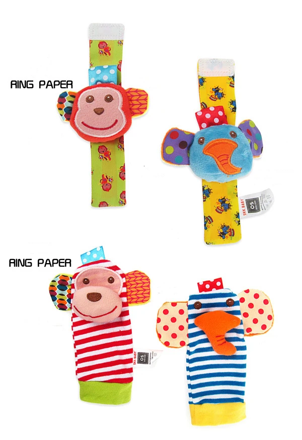 Детские мягкие погремушки Lucky Hooo, игрушки для младенцев, Мультяшные животные, браслеты, наконечники для рук, лапы, плюшевые носки, развивающие игрушки, подарок