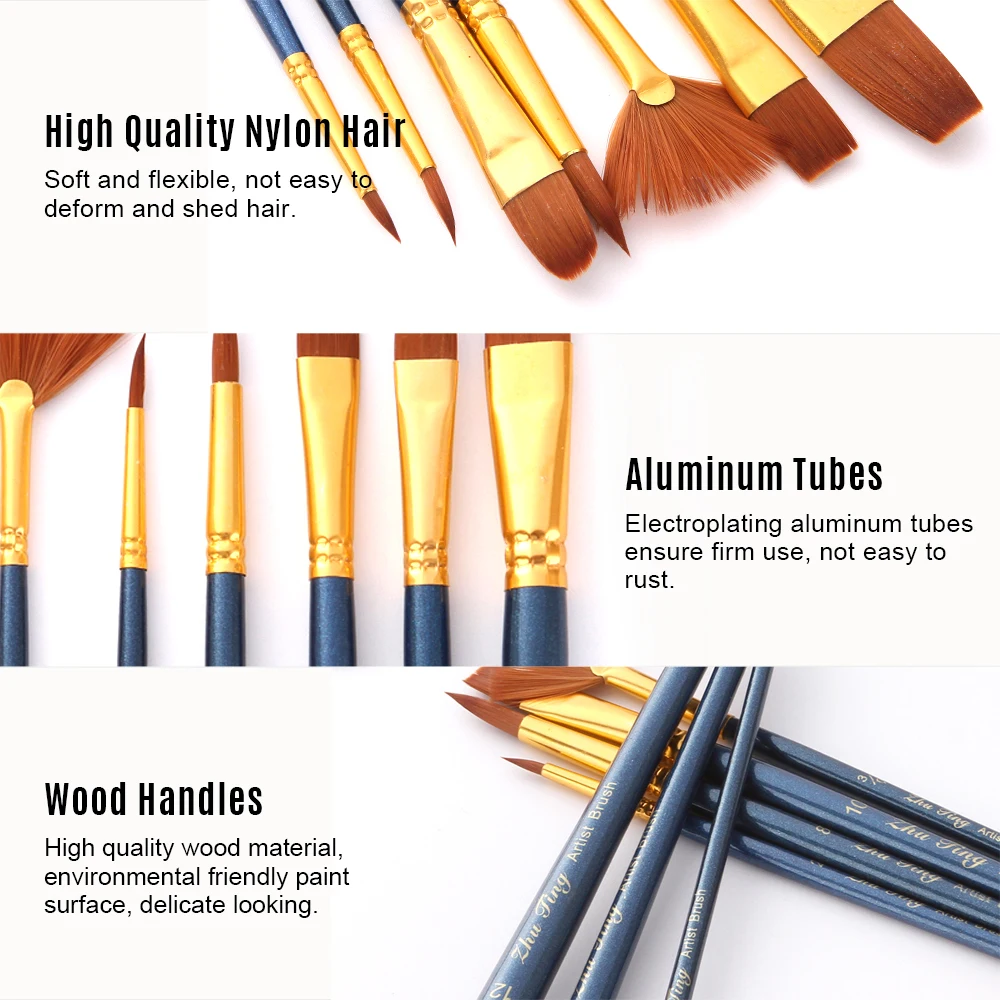 Кисти имеют нейлоновые волосы, мягкие и гибкие, не легко деформируются и линяют волосы, легко впитывают краски. Этот отличный набор кистей сделает ваше художественное выражение лучше.