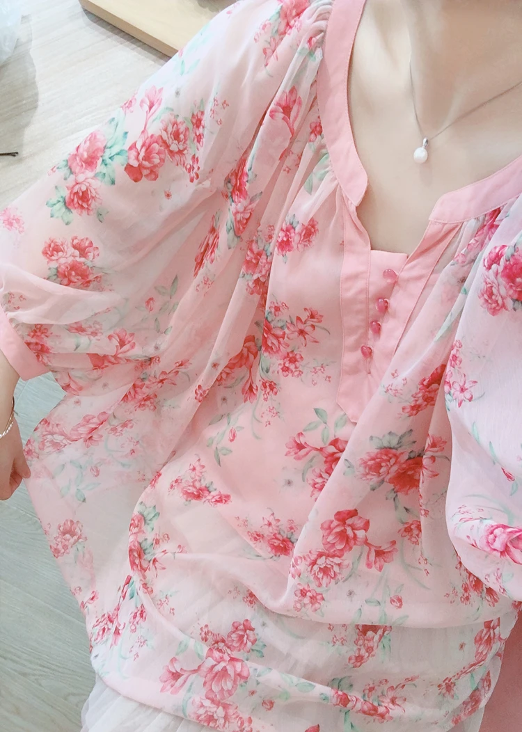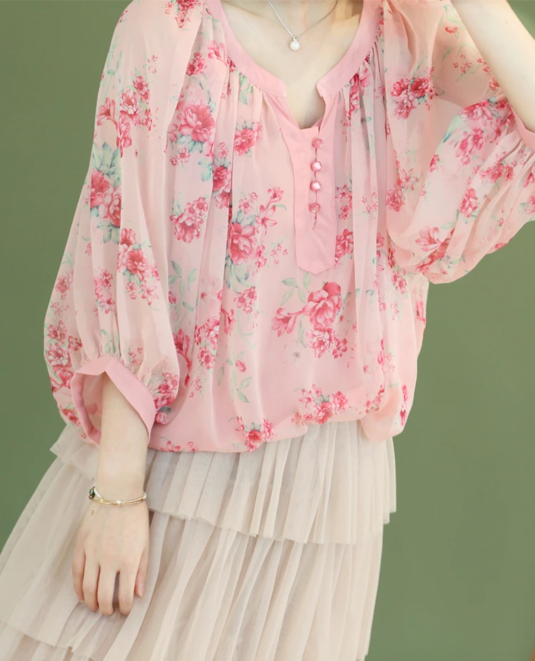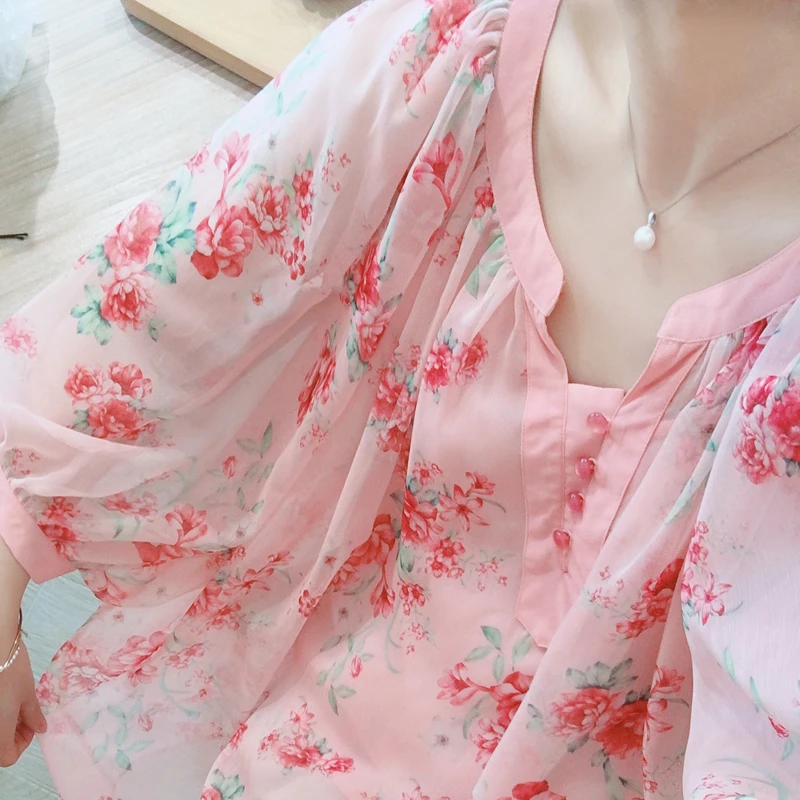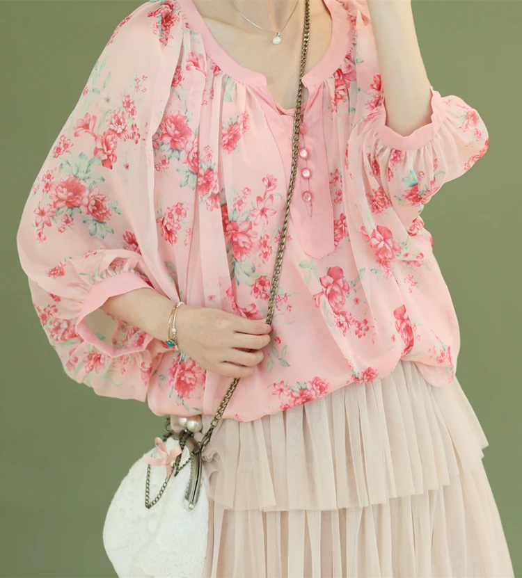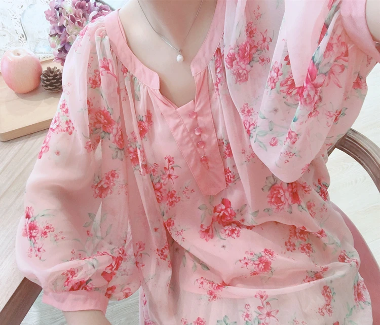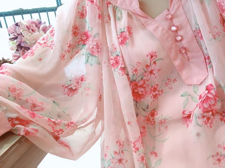 Бесплатная доставкаAIGYPTOS/оригинальный дизайн; Летние женские милые блузки больших размеров; Винтажные блузки с рукавами-фонариками и цветочным принтом; Повседневные Ультра свободные блузкиРозовыйШифоновые блузки, рубашки.