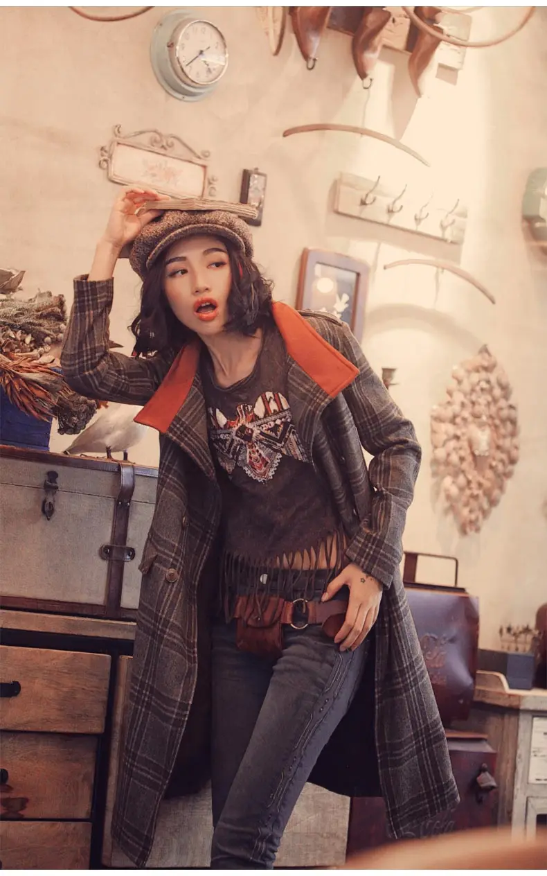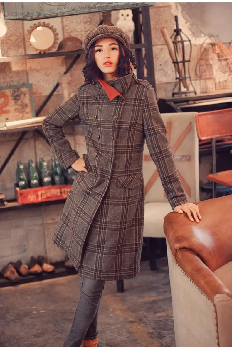 Женское длинное шерстяное пальто в британском винтажном стиле с оригинальным дизайном Ткань: шерсть. Подкладка: полиэстер. Доступные цвета: как на картинке. Доступные размеры: S,M,L. Способ стирки: Химчистка