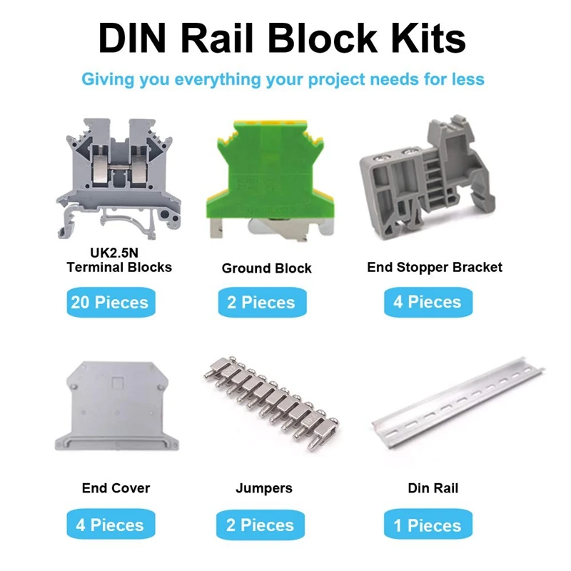[Соединители заземления Клемма заземления] блоки Клемма заземления обеспечивают легкую в идентификации, удобную, аккуратно организованную шину заземления, которая устанавливается на din-рейке. Защитные клеммные блоки имеют прочные зажимы для обеспечения плотной фиксации на din-рейках для достижения функции PE.