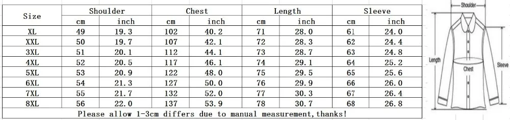 -8XL Размер похож на евро-5XL/6XL; Для роста около 180-205 см, для веса около 130-140 кг