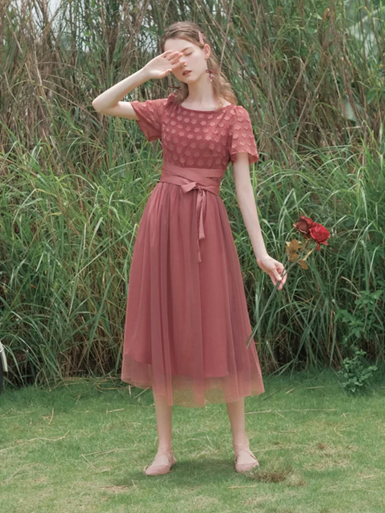 Летнее корейское Платье женское винтажное элегантное тонкое шифоновое Сетчатое платье средней длины в стиле пэчворк женское Ретро милое Бандажное длинное платье на талии ropa mujer