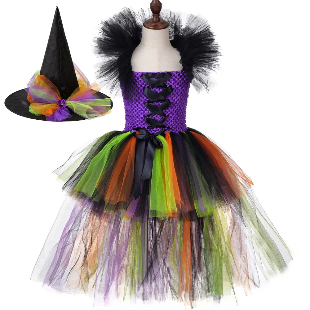 Тема: яркая детская одежда для девочек на Хэллоуин с изображением ведьмы и хвоста. Материал: высококачественные нейлоновые тюлевые полоски + эластичное вязаное крючком верх + перекрещивающиеся ленты Цвет: черный, зеленый, оранжевый, фиолетовый. Повод: косплей, Хэллоуин, карнавал, джунгли сафари, день рождения, вечерние, Рождество, фотография, танец, представление, праздник, новый год, выпускной, карнавал, Рождество, фестиваль, Пасха, карнавал, свадьба, день Святого Валентина, Первое причастие, цветочница, Крещение, День благодарения, Необычные Вечерние маскарадные костюмы и т. Д. Советы: 1. Индивидуальный заказ и Прямая поставка приветствуются, возможен индивидуальный дизайн/цвет/размер/идея. 2. Платье принцессы для девочек с подкладкой внутри, а также с большим количеством тюлей, поэтому платье гораздо более пышное. Ниже показаны фотографии платьев-пачек.