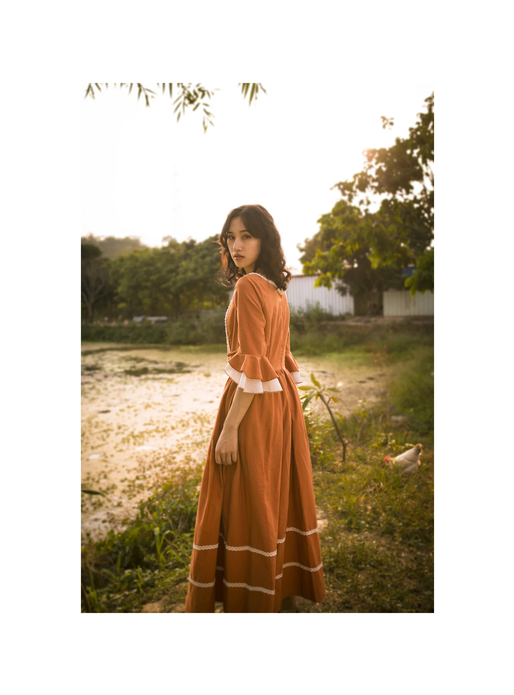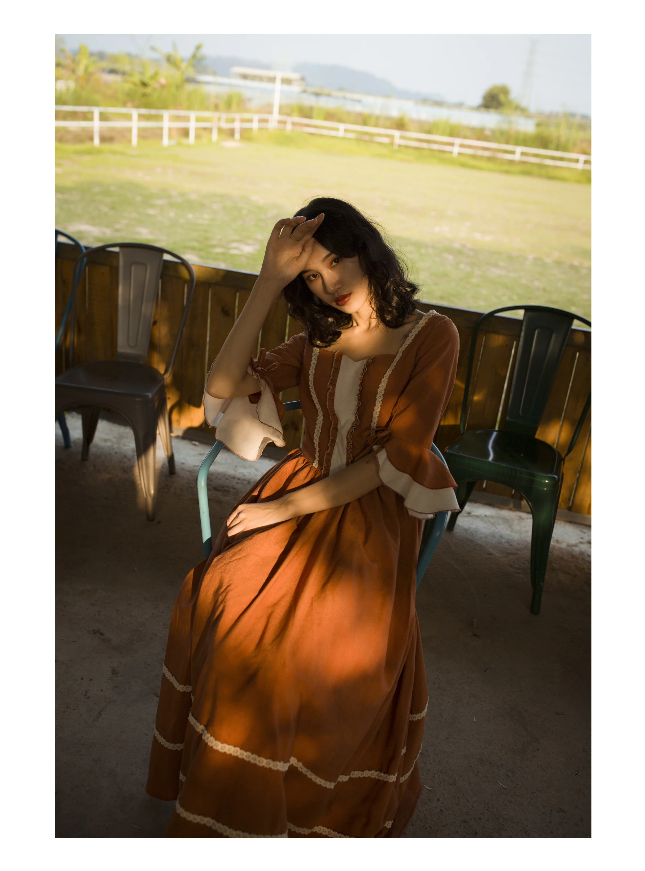 AIGYPTOS/оригинальный дизайн; Сезон весна-осень; Женская Винтажная обувь во Французском деревенском стилеРукав-клешЭлегантное тонкое хлопковое вельветовое длинное платье принцессы