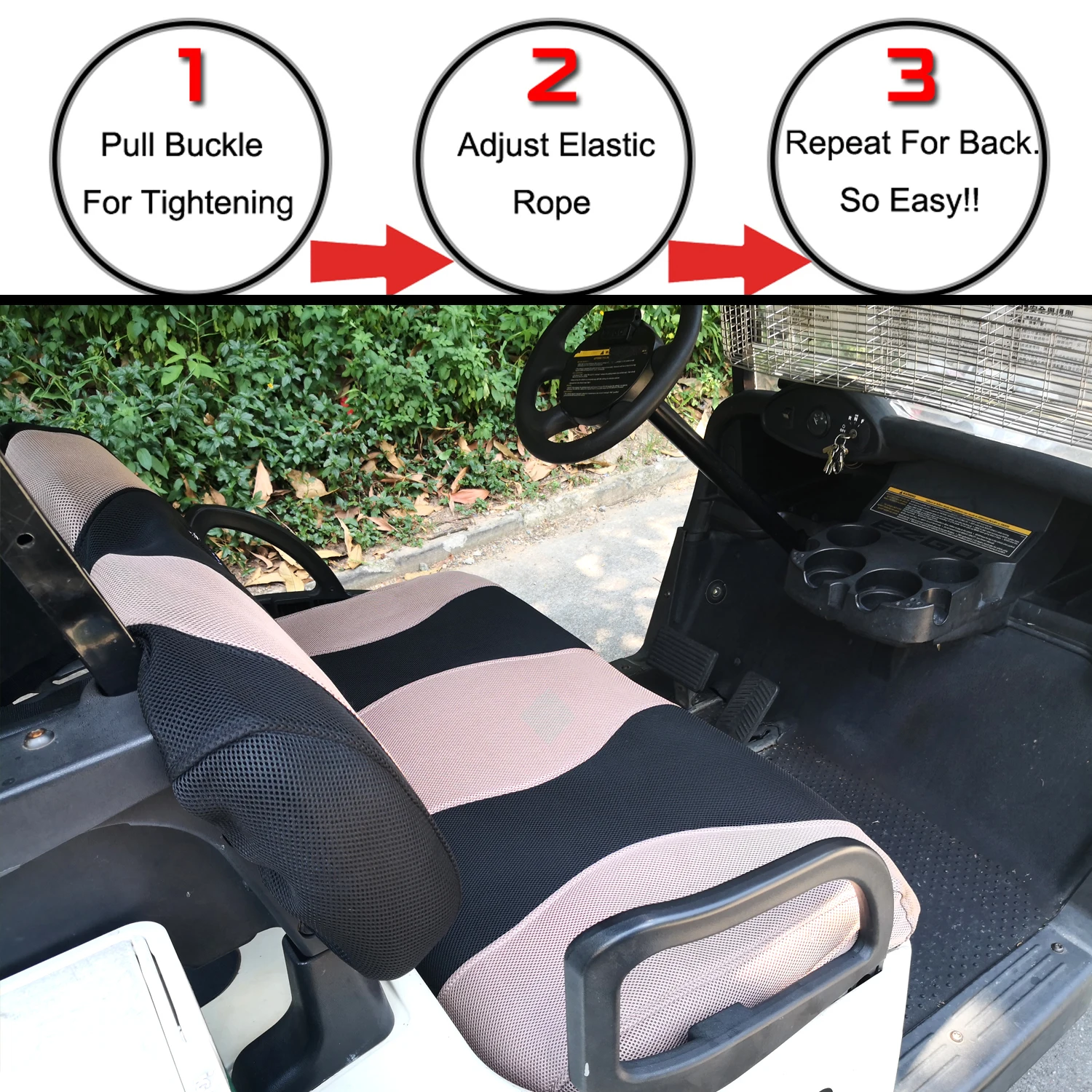 Детали Condor сиденье тележки для гольфа Чехол Набор подходит для E-Z-GO TXT, RXV и клуб автомобиль DS, скамейка чехлы для сидений дышащая моющаяся полиэфирная сетка ткань. Обновите и Защитите свои сиденья в гольф-картах. Давайте Наряжаться вашей корзине. Вы этого заслуживаете.