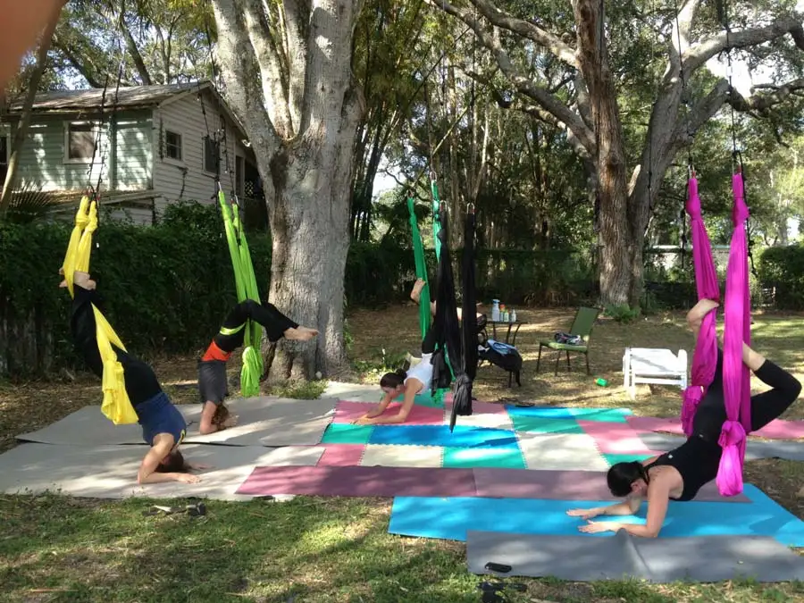 ● Материал ткани: высокопрочный 100% нейлон, лучшее качество, наиболее удобный, эластичный, идеально подходит для занятий йогой и качелями.