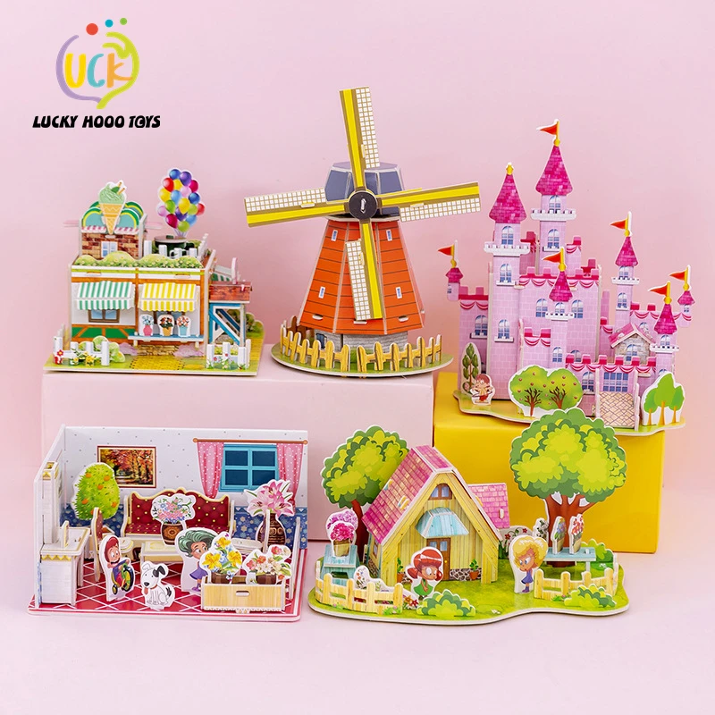 3D DIY головоломка обучения игрушка замок конструкция шаблон для детей головоломки дома модели строительные игрушки