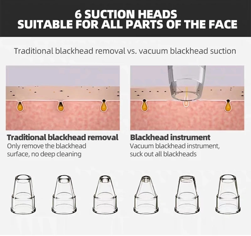 Средство для удаления угрей и черных точек в черный горошек для лица, электрический пылесос для угрей, пористая кожа, инструменты для ухода, машина с 6 головками