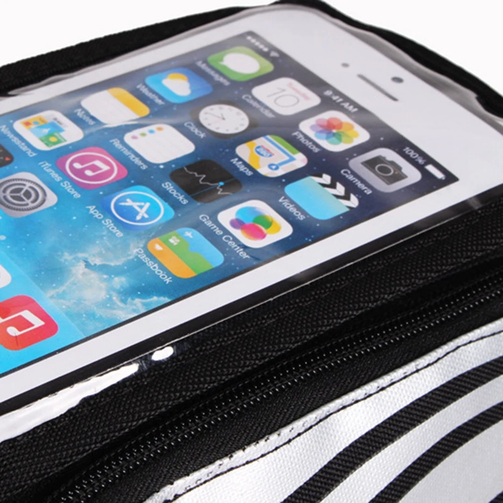 100% новый товар высокого качества. Отличный материал, водонепроницаемый и прочный в повседневной жизни. Модный и уникальный внешний вид, сделает ваш велосипед более крутым. Липучка с обеих сторон для быстрого удаления и установки. Дизайн на молнии, безопасен для внутренних предметов и легко открывается или закрывается. Подходит для 5,7 "телефон, сенсорный экран мешка делает его более удобным в использовании.