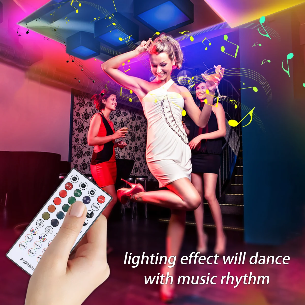 Благодаря встроенному высокочувствительному микрофону светильник с полосками будет танцевать с разными цветами и скоростью с ритмом музыки.