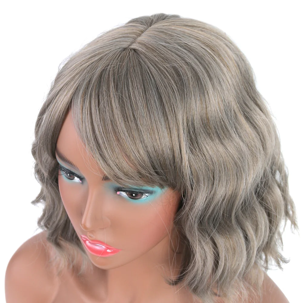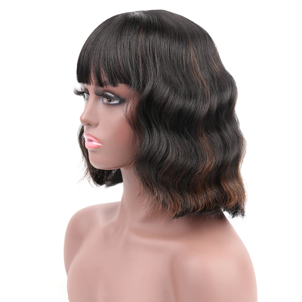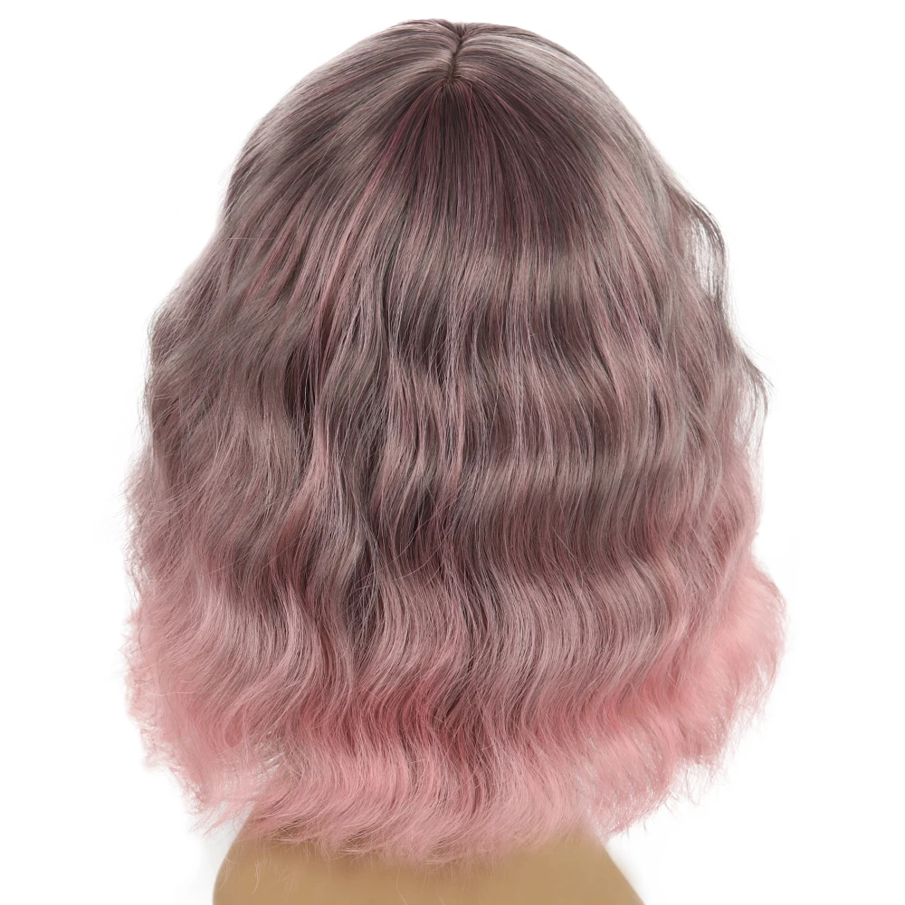 Современная королева 12 "Водная волна синтетические парики с челкой короткие женские парики смешанный фиолетовый боб парики термостойкие накладные волосы для женщин