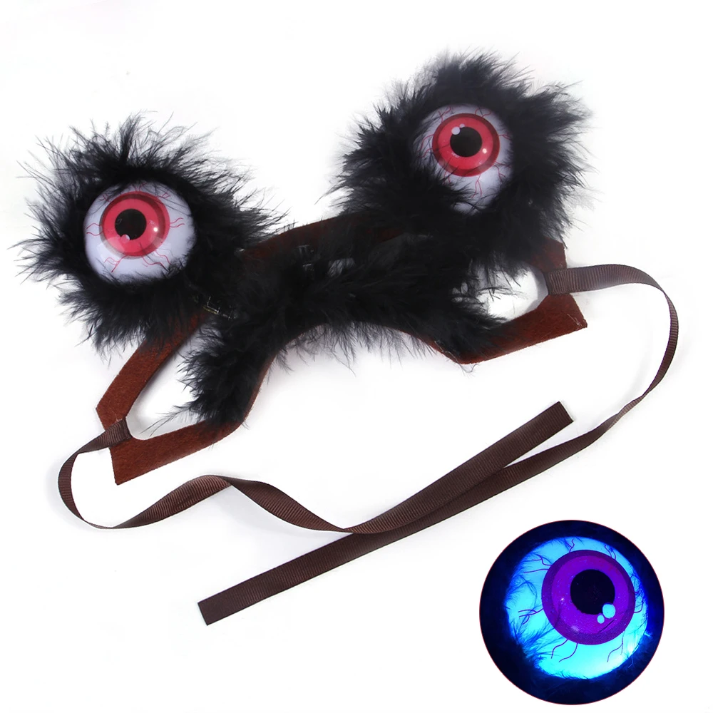 Забавный светящийся головной убор монстра с большими глазами парик для кота.