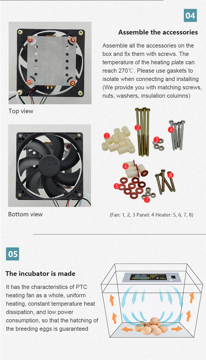 2. Принять PTC нагревательный лист, автоматическая постоянная температура, энергосбережение, дать вам стабильную инкубаторную температуру.